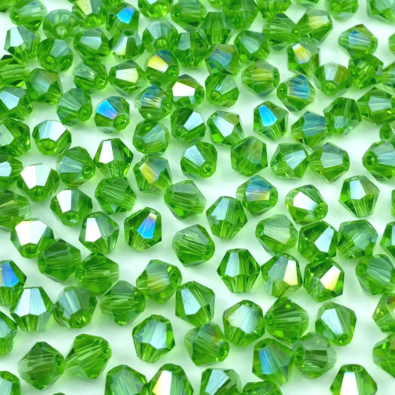 250pcs 6mm Bicone Crystal Glass Beads Loose Spacer Beads Faceted Craft Beads for Jewelry Making DIY Necklace Bracelet Earring Wind Chimes Suncatchers Ornamen(Grass Green AB)