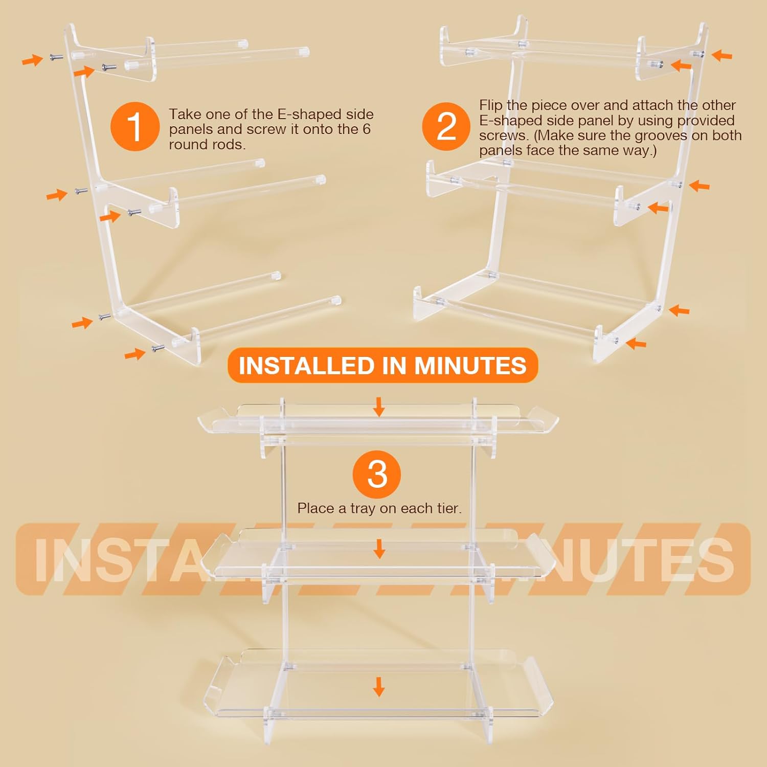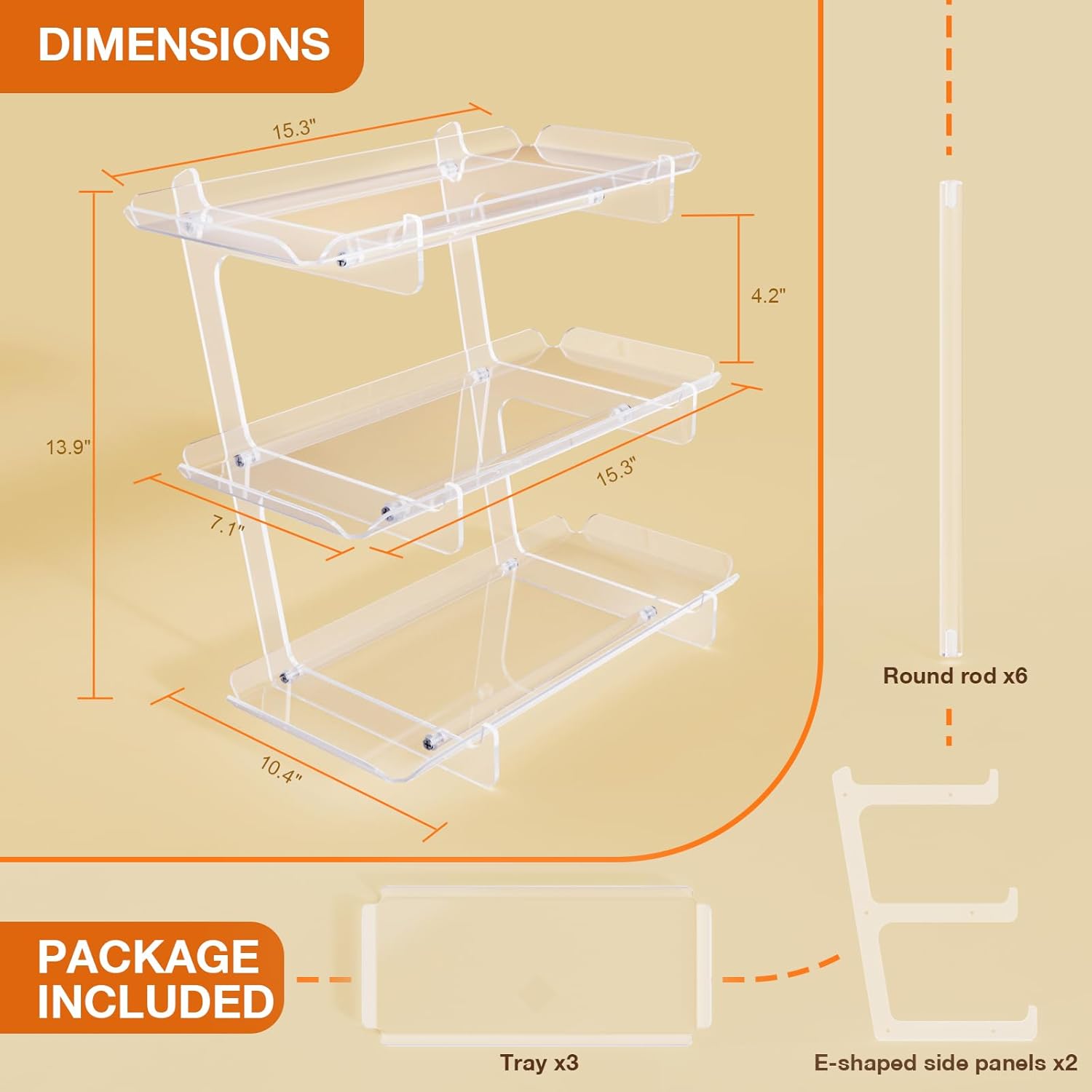 - Effortless Assembly & Maintenance: Assemble the serving platter in minutes—no tools required! Simply secure the 6 support rods, and your serving tray is ready to use. Cleaning is a breeze—just wipe with a damp cloth (not dishwasher safe). When not in use, disassemble and store flat (collapsed thickness <3"), making it ideal for compact spaces.