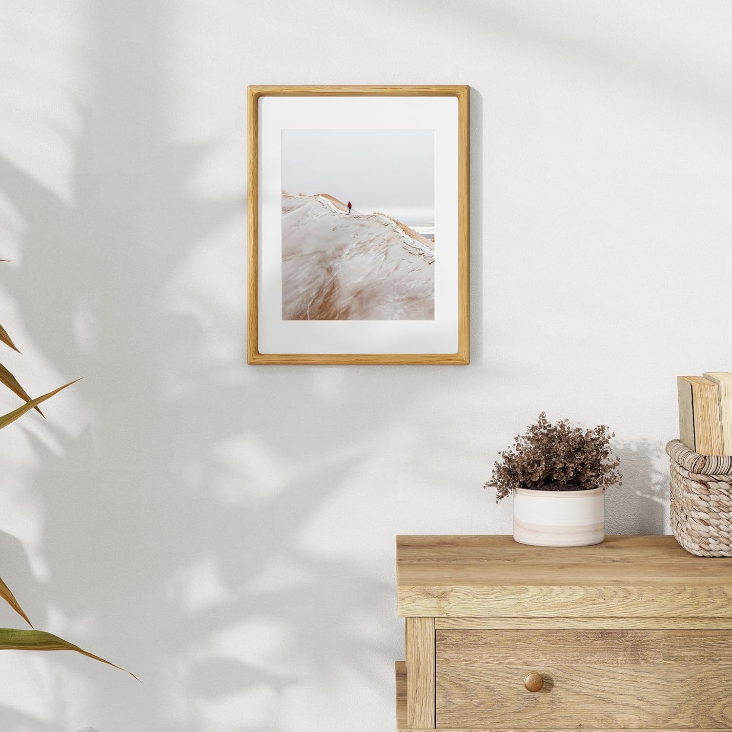 11x14 Wooden Picture Frames USA-Sourced Natural Oak Wood Solid Wood Photo Frame Handcrafted Rounded Corner with Mat to 8x10 Picture Frame Vintage Display with Real Glass Family Picture, Wedding Photo