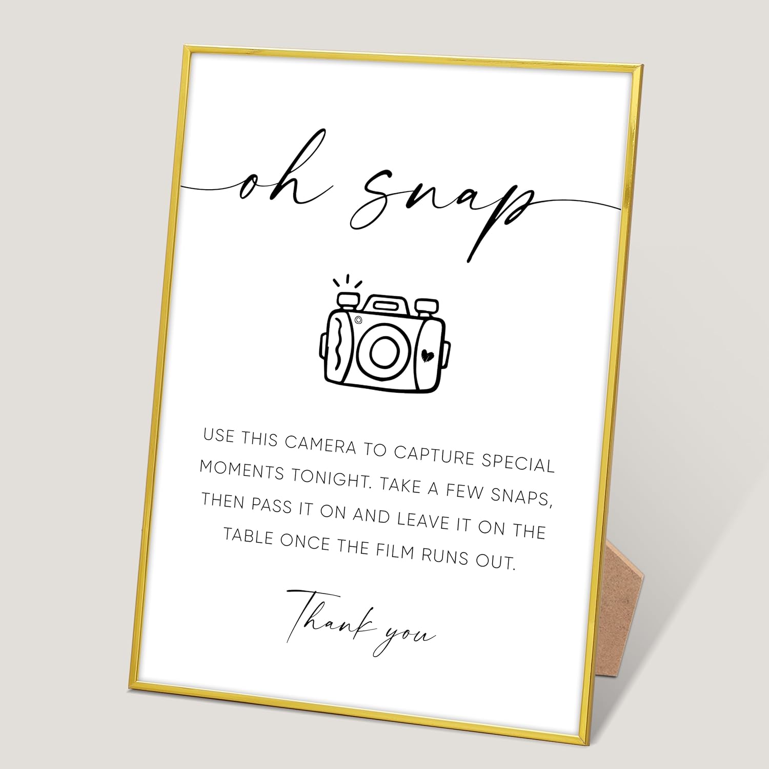 Oh Snap Sign, Wedding Disposable Camera Sign, Engagement Party Desk Decor for Guest book Alternative, Bridal Shower and Wedding Reception, Wedding Party Favors, Gold Frame Wedding Signs with Stand,6
