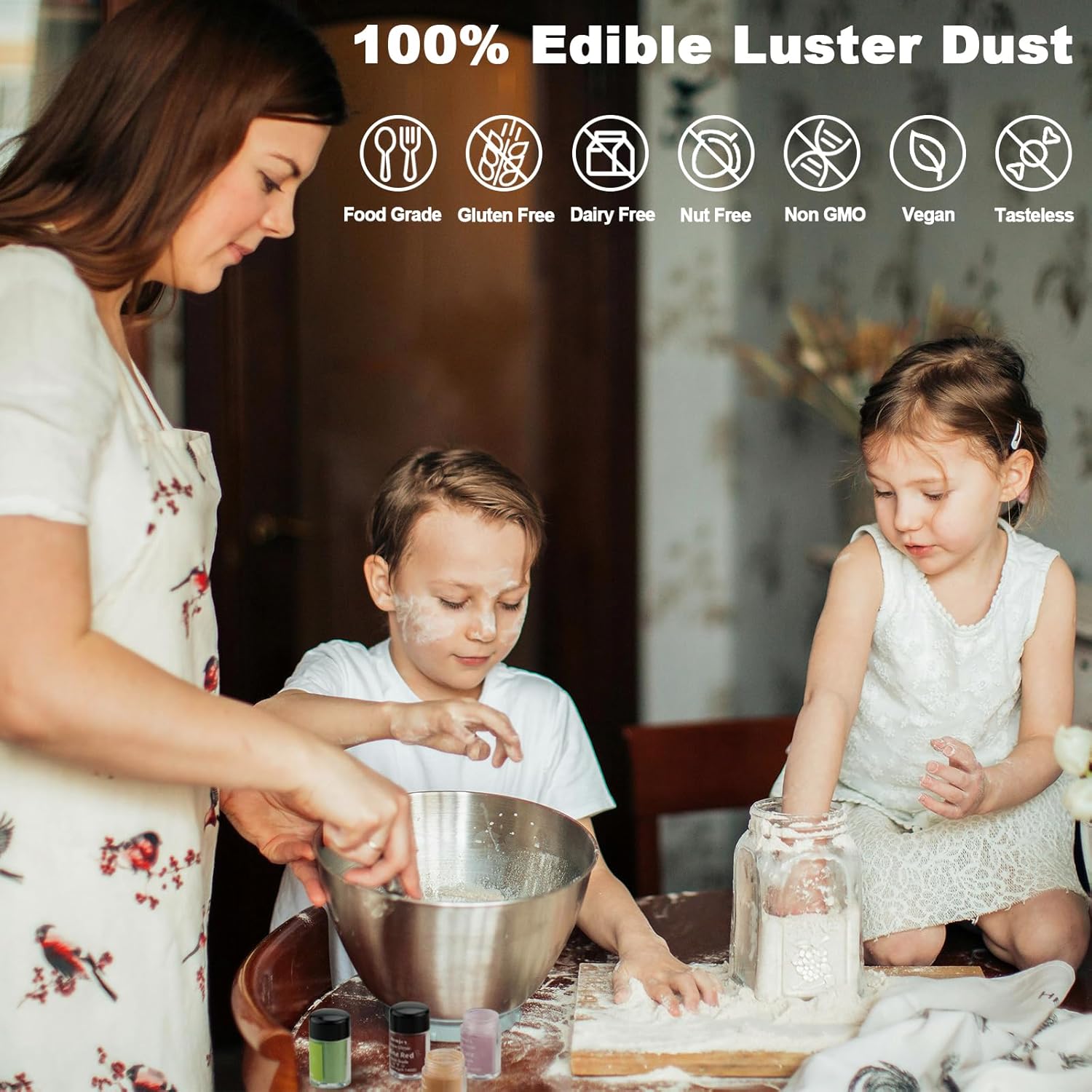 - ✔10 Colors Edible Luster Dust - This edible glitter set contains: Wine Red, Plum, Sakura,Sunset, Gold, Lemon, Lavender, Sapphire Blue, Silver Grey, Super White.