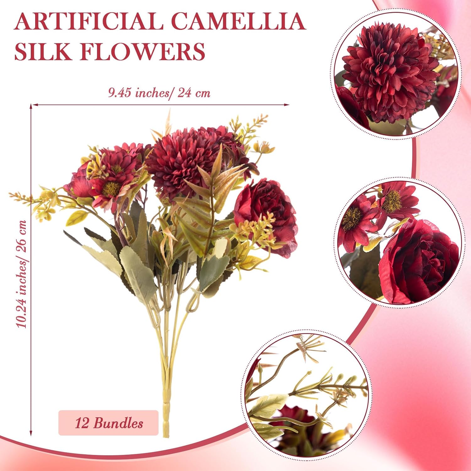 - Rich Flower Decorations: 12 bundles of faux peony flowers in claret will be delivered to your hand quickly once ordered, and each bundle has 7 flower heads, bright and stylish, enough for you to use or replace, making your home look more charming