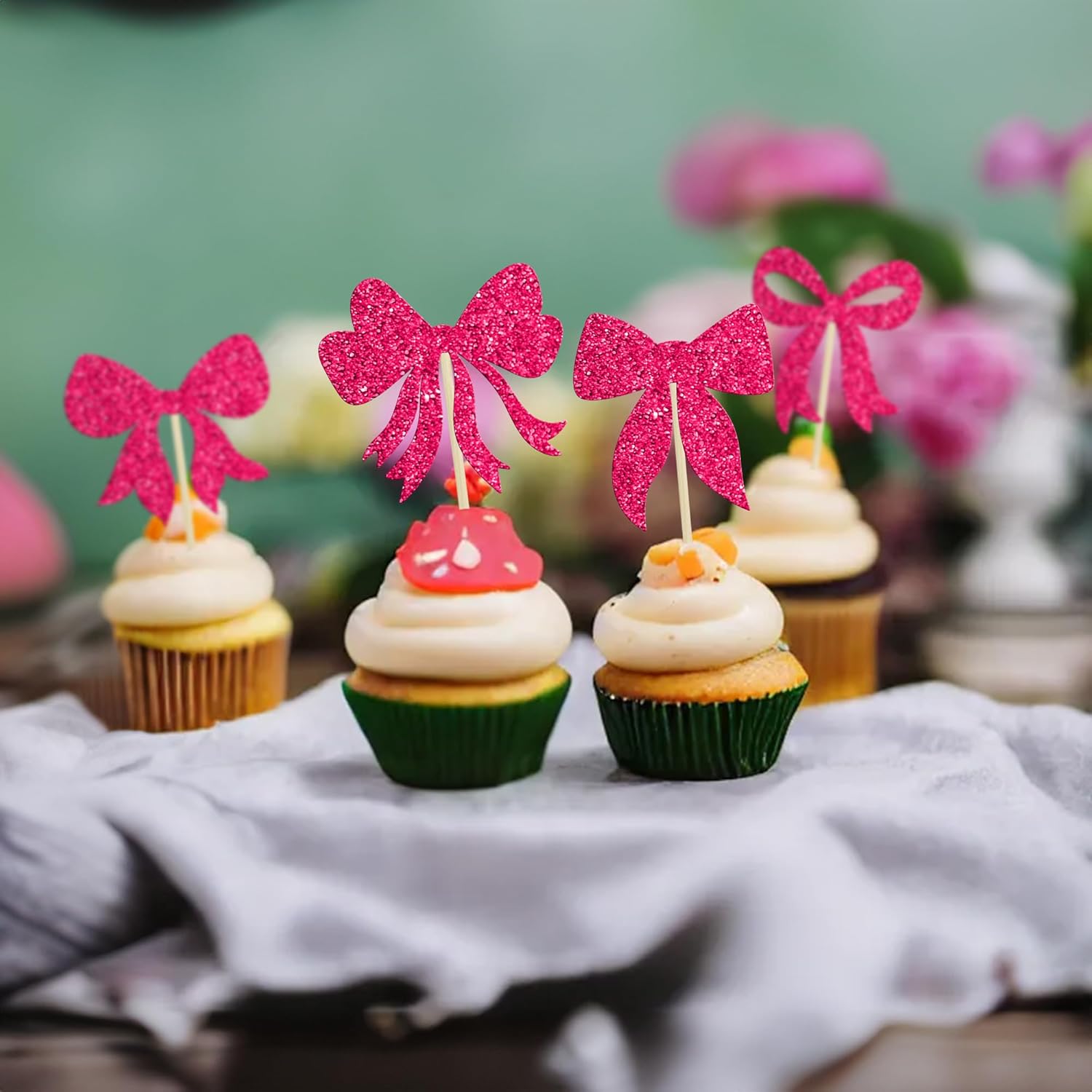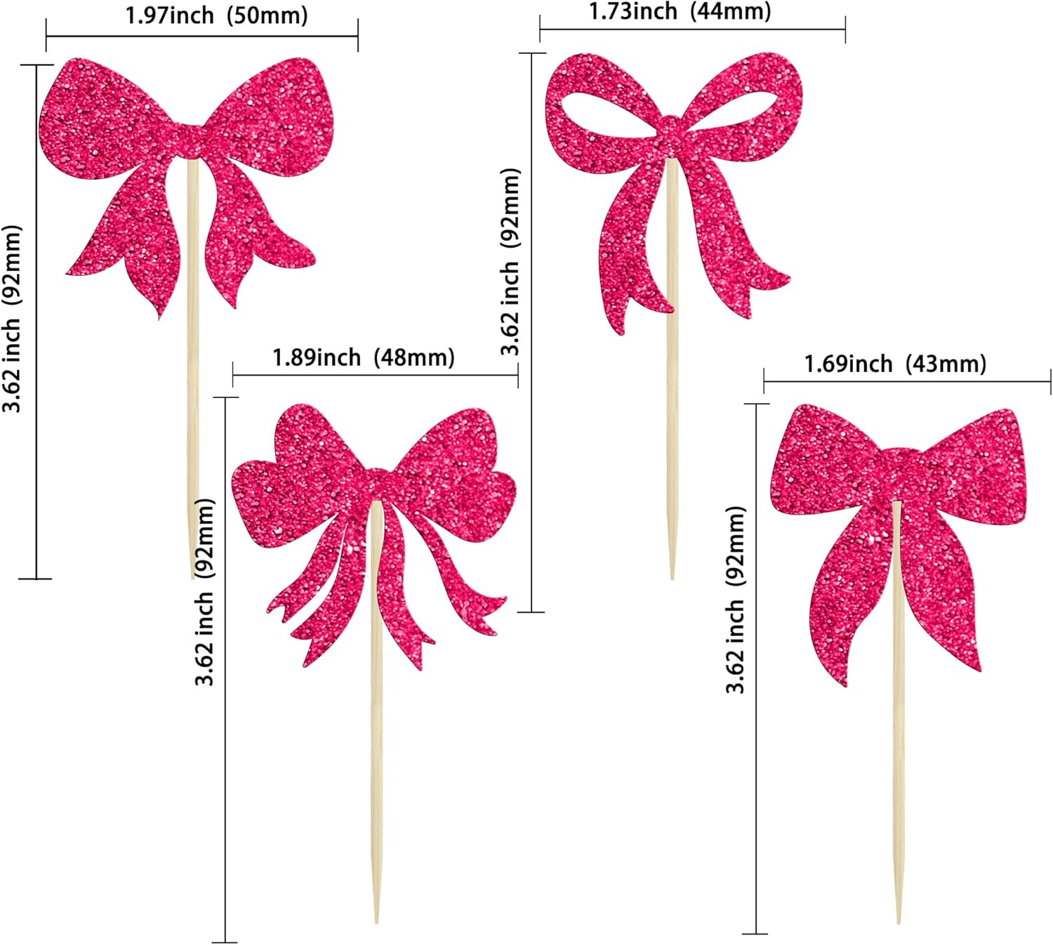 Gyufise 36Pcs Bow Cupcake Toppers Glitter Bowknot Cupcake Picks Bow Tie Birthday Decorations Princess Bow Cupcake Decorations for Bowknot Theme Baby Shower Birthday Party Supplies Rose Red