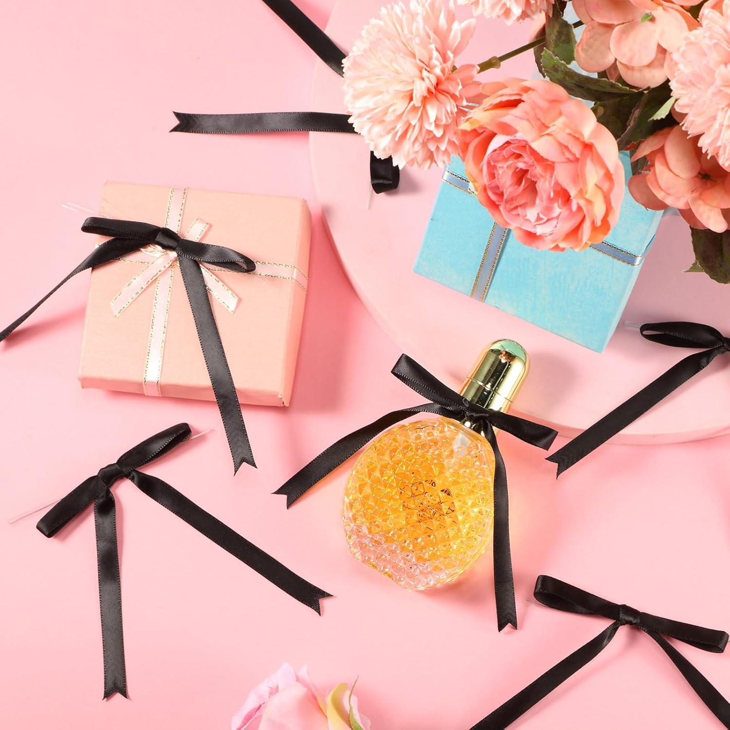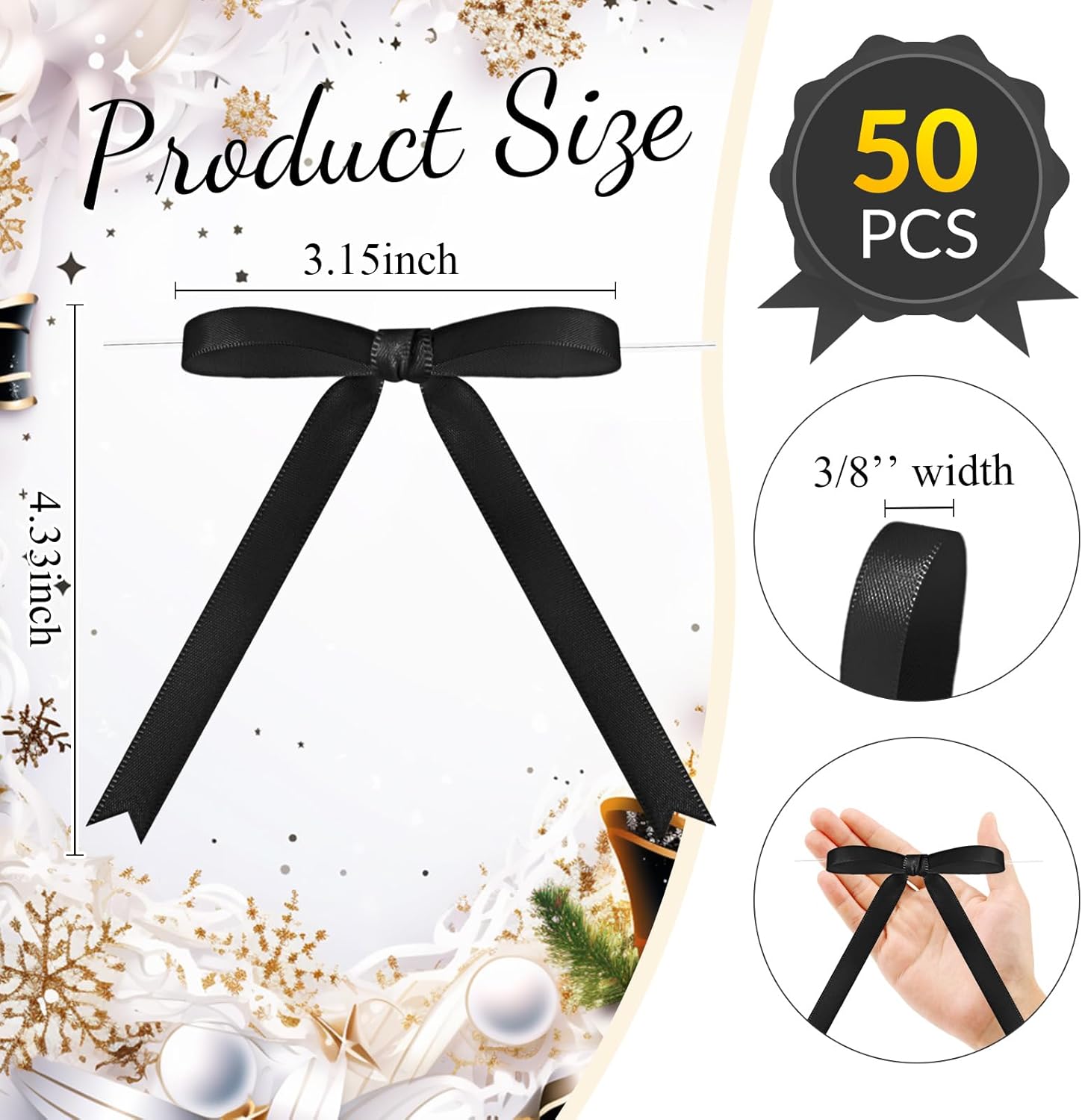 - Black Twist Tie Bows: our package includes 50 black ribbon bows and 50 twist ties; This set will easily meet your various needs for decoration or DIY projects; The dimensions of our bow are approximately 3 x 4.5 inches/ 8 x 11 cm; The decent size is suitable for decorating gifts, packages, and other items; You can have fun with family and friend making eye catching decorative pieces by DIY