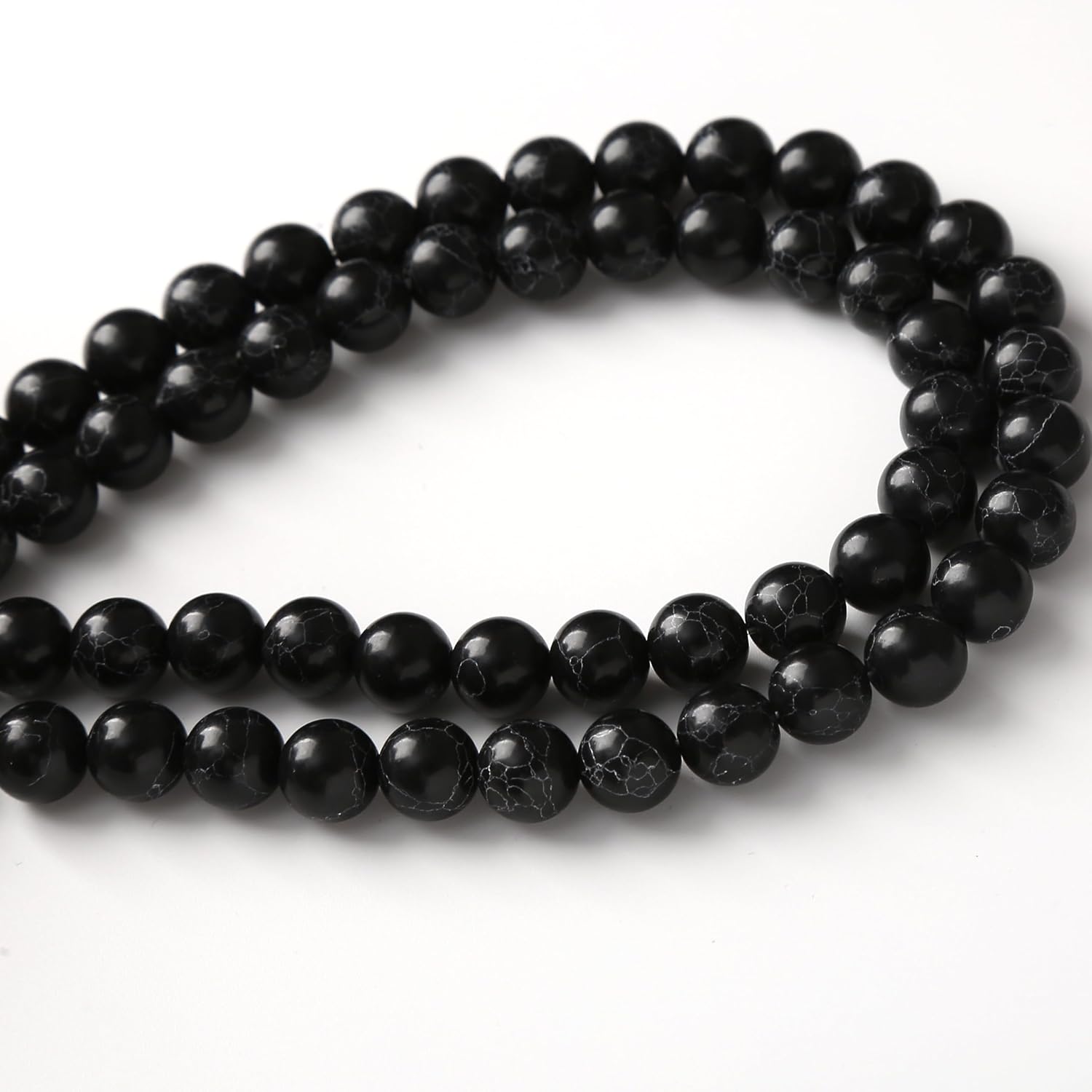 Black Turquoise Stone Beads Gemstone Round Crystal Energy Jade Beads Stone Beads for Jewelry Making DIY Bracelet Necklace Jewelry Making 1 Strand 15.5inch 4MM