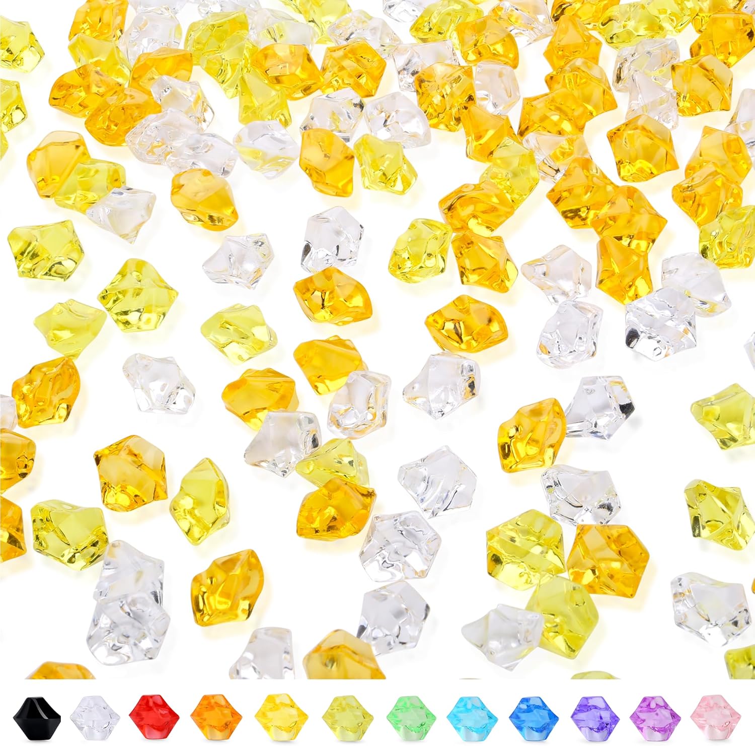 YATOJUZI 500pcs Fake Ice Cubes Yellow Assorted Acrylic Crushed Rocks Vase Fillers Plastic Diamonds Gems for DIY Party Wedding Centerpiece Table Scatter Prop Display 0.5" (Random Color)