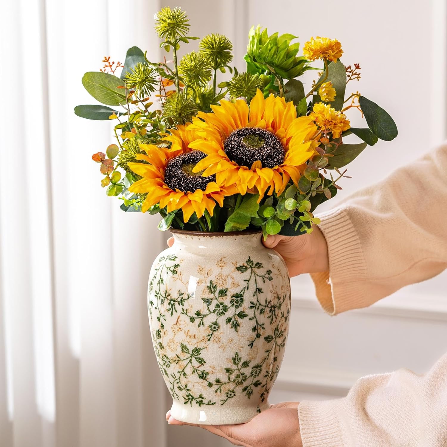 - Easy to Clean and Maintain: This ceramic vase is designed for easy cleaning and long-lasting use. It blends seamlessly with various styles, including grand millennial decor, Tuscan decor, and modern farmhouse settings, making it a practical yet beautiful addition to your space.