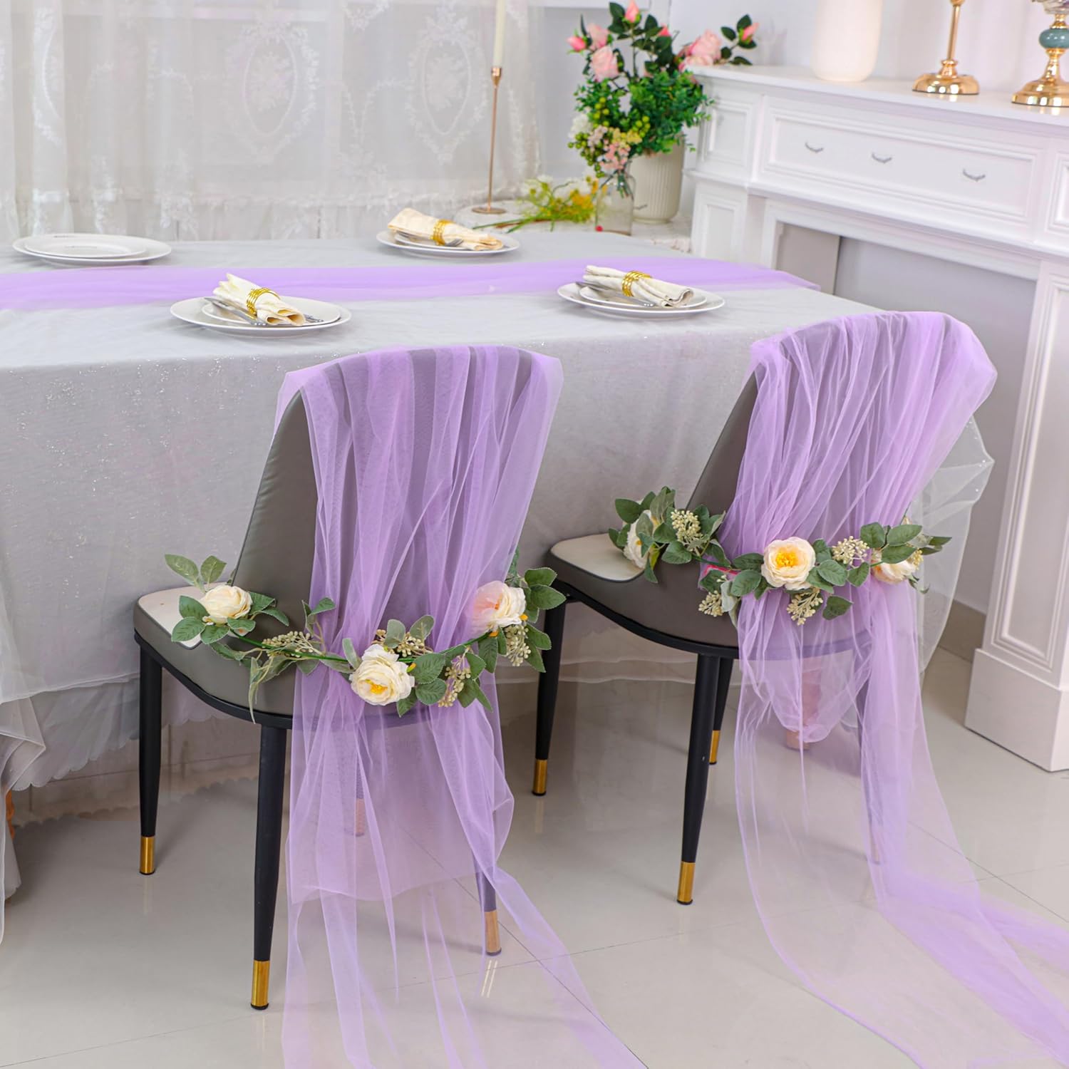 - Lavender Table Runner: The package include 1 pack 10ft length lilac purple cheesecloth table runner. All the purple table runners are 27.5 x 120 inches, which is large enough to cover most kinds of tables, or be put together for longer tables