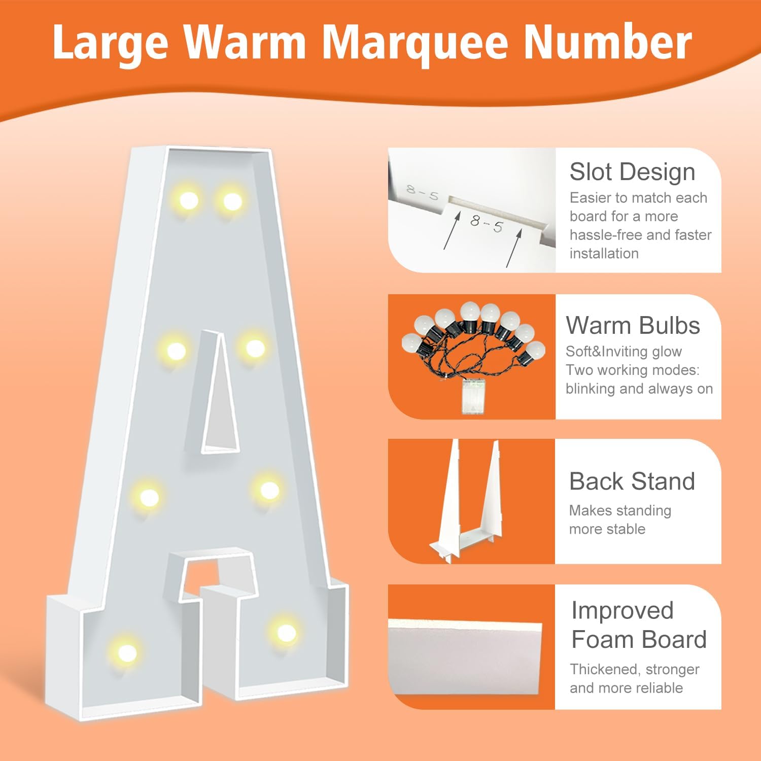 3FT Marquee Light Up Letters, LED Marquee Letters A for Birthday Balloons Backdrop, Large Light Up Letters for Baby Shower Anniversary Decorations Party Wedding Decor, Pre-Cut Foam Frame Kit