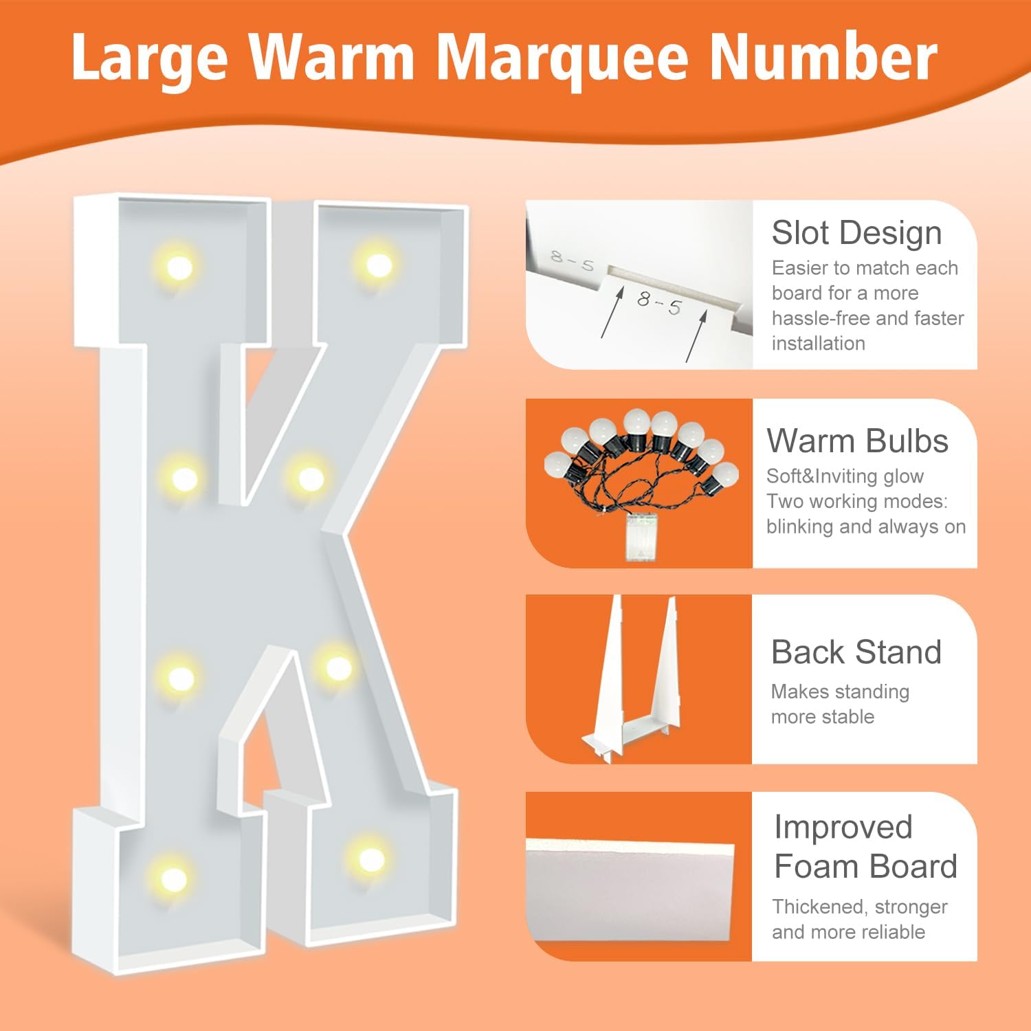 3FT Marquee Letters K, Party Decoration Large Marquee Light Up Letters, Pre-cut Foam Board Letter Set for Birthdays Baby Shower Wedding Event Bridal Shower Engagement Anniversarty Party Decor