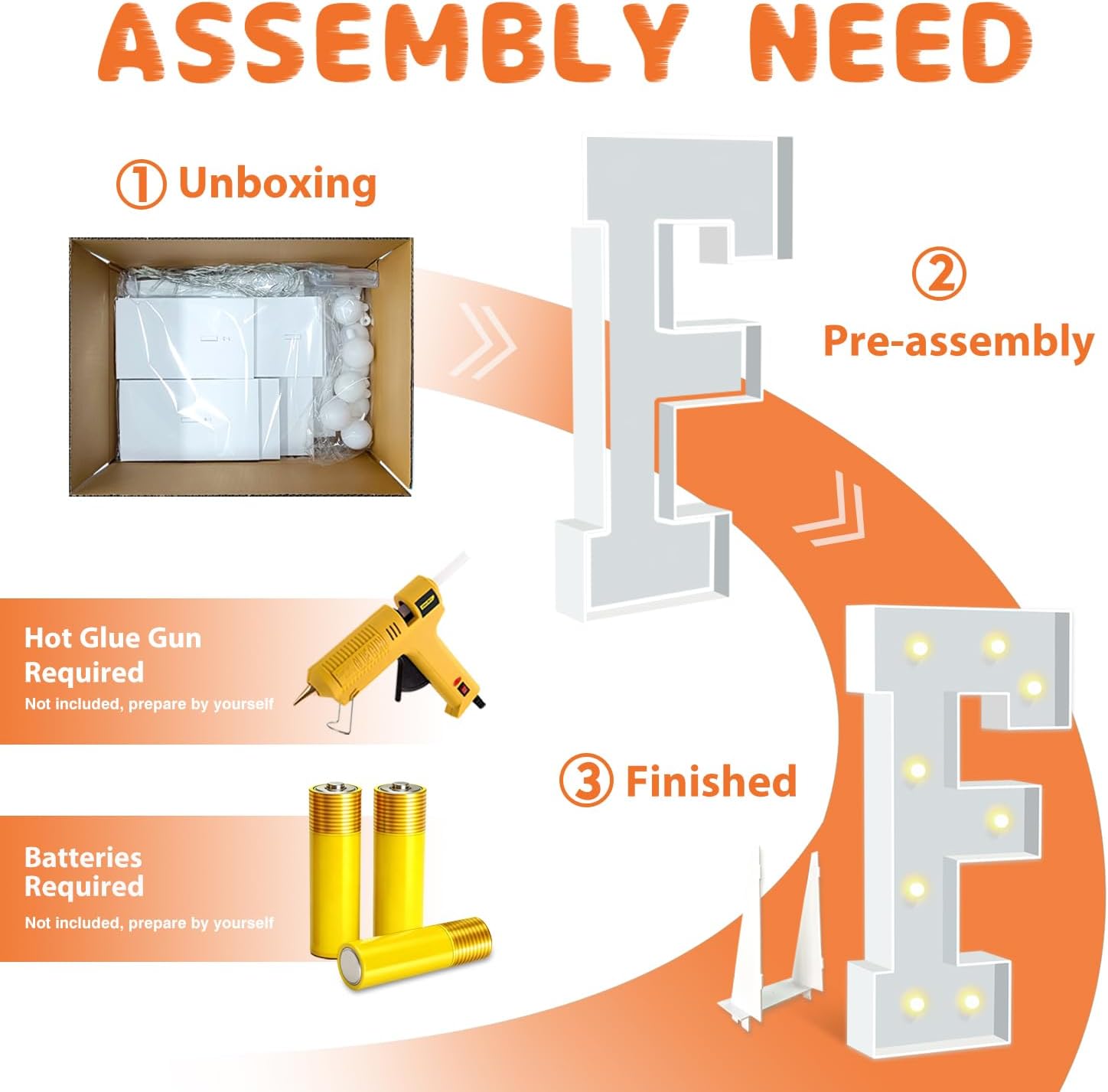 - EASY TO ASSEMBLE: The package includes pre-cut foam boards, light strings and instructions. Each foam board has slots and is numbered, so you can match them according to the 2 same numbers. All you need to do is to prepare a hot glue gun and 3 AA batteries, follow the step-by-step instructions or online video for a hassle-free assembly. Decorate the party with your kids or friends and enjoy the DIY fun. (Note: Glue gun, glue and batteries are not included)