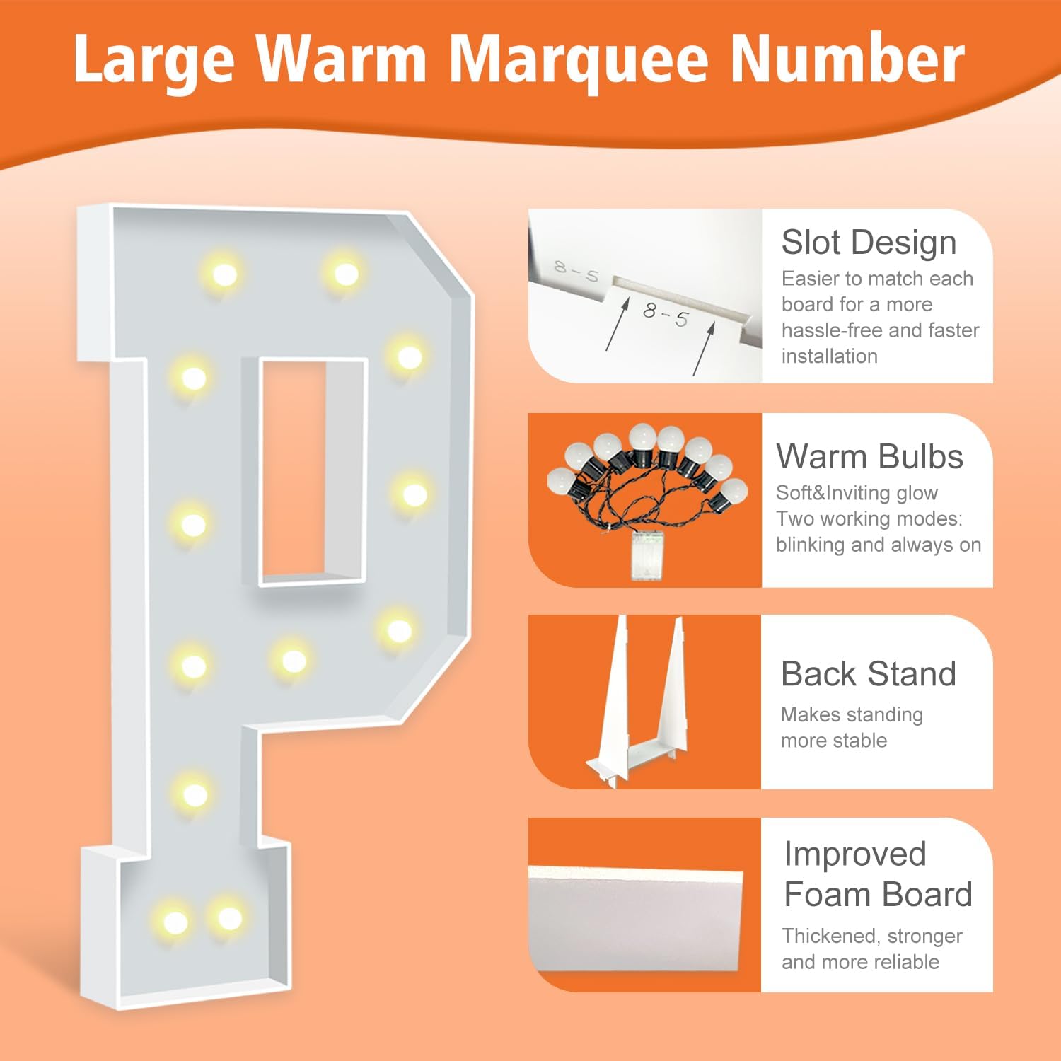 4FT Light Up Marquee Letters P, Large Lighted Letters for Party Backdrop Decor, Mosaic Cardboard Letter for Weddings, Birthdays, Anniversaries, New Year's Celebrations, Easy to Assemble
