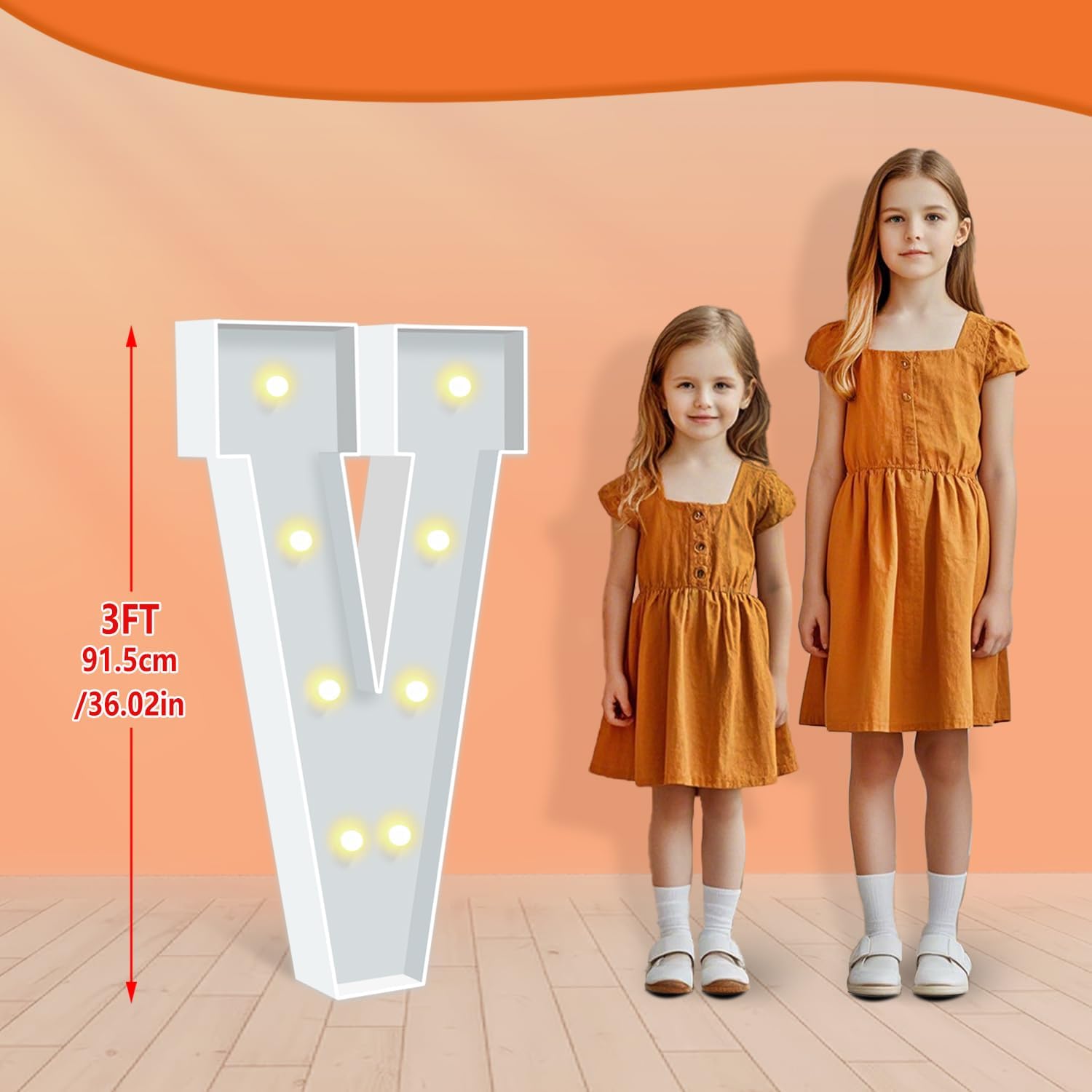 3FT Marquee Letters, Mosaic Large Letters V for Birthday Party, Light Up Letter for Wedding Backdrop Decoration Anniversary Baby Shower Day Decor, Pre-Cut Big Foam Board Frame Kit