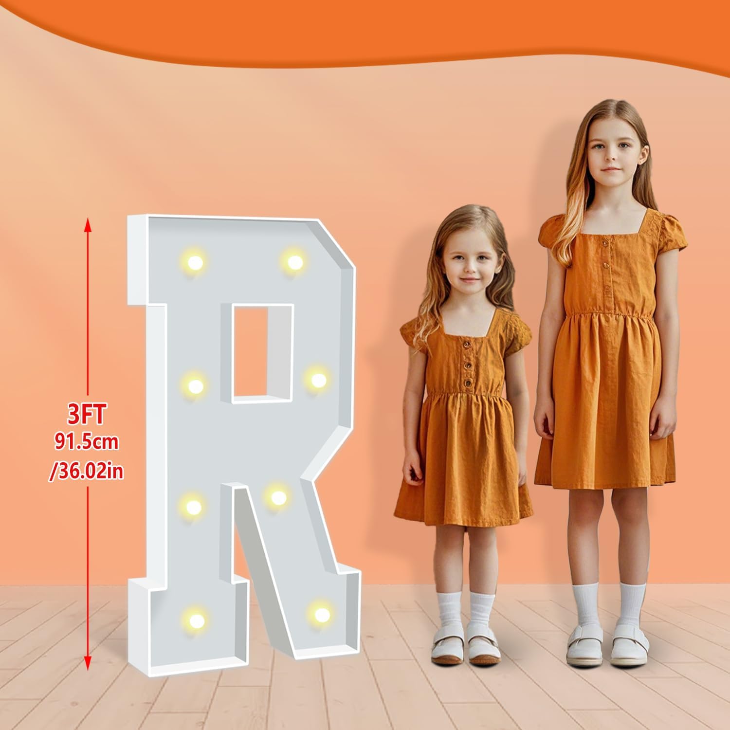 - BRIGHT & SAFE LIGHTING: The light up letters are powered by 3 AA batteries(not included), ensuring the safety of all your guests. There's a switch on the battery compartment, you can switch the Warm Yellow led light from steady to cheerful flashing, ideal for creating a cozy, inviting ambiance to any celebration or event.