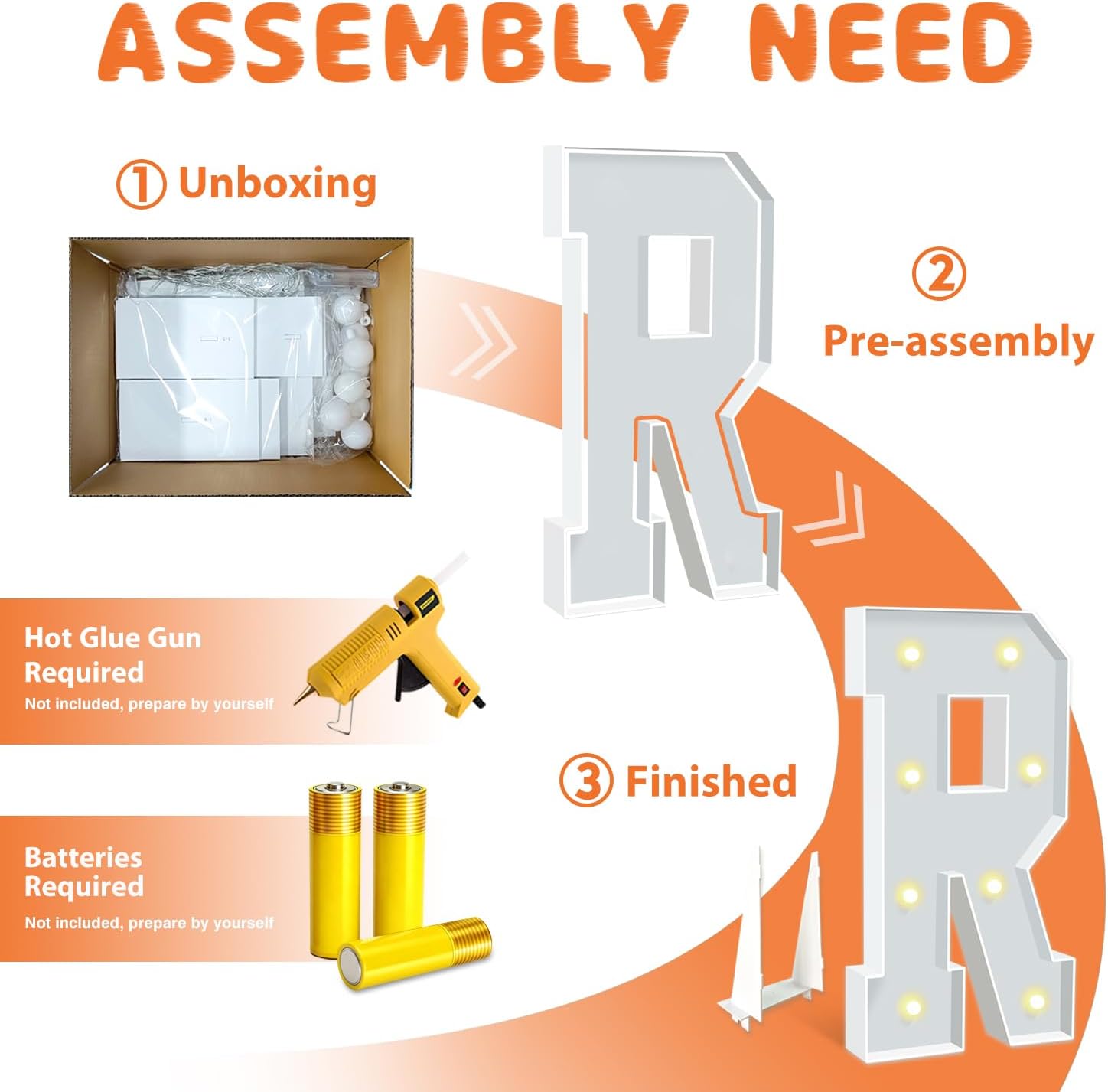 - EASY TO ASSEMBLE: The package includes pre-cut foam boards, light strings and instructions. Each foam board has slots and is numbered, so you can match them according to the 2 same numbers. All you need to do is to prepare a hot glue gun and 3 AA batteries, follow the step-by-step instructions or online video for a hassle-free assembly. Decorate the party with your kids or friends and enjoy the DIY fun. (Note: Glue gun, glue and batteries are not included)