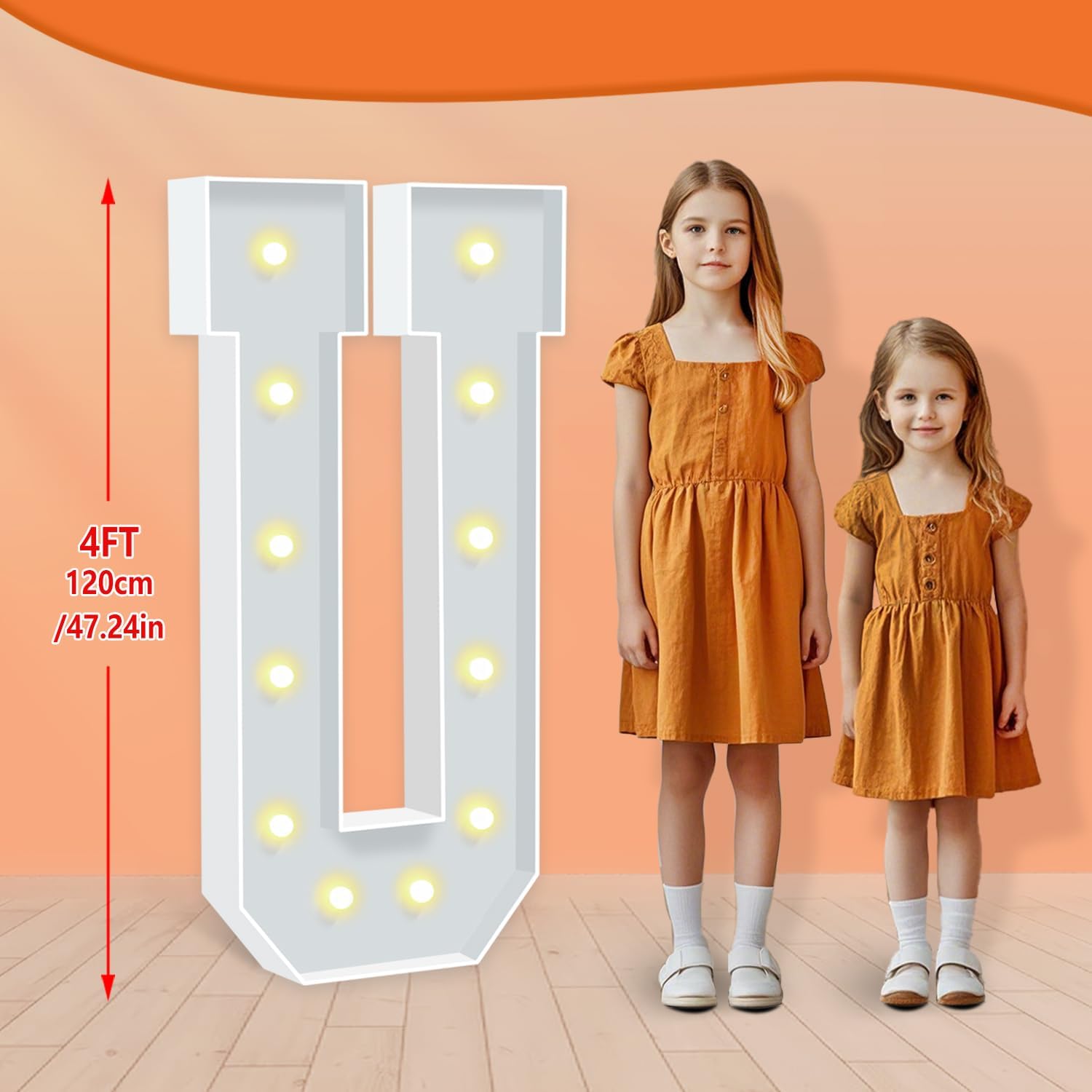 4FT Marquee Light Up Letters, 4 Feet Tall Warm White LED Letters U, Large Mosaic Marquee Letter for Birthday Wedding Anniversary, Light Up Letter Sign for Graduation Party Decoration