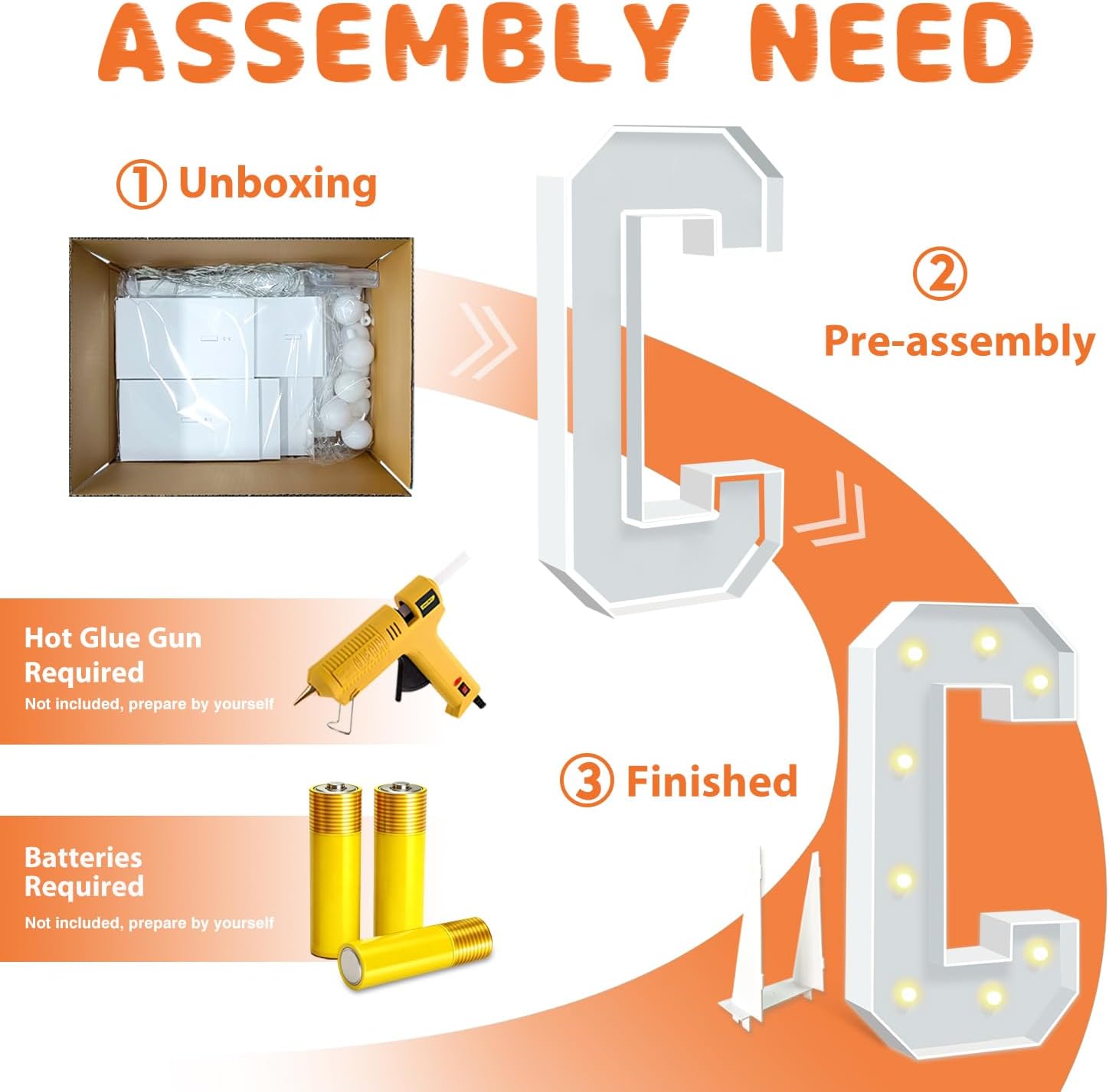 - EASY TO ASSEMBLE: The package includes pre-cut foam boards, light strings and instructions. Each foam board has slots and is numbered, so you can match them according to the 2 same numbers. All you need to do is to prepare a hot glue gun and 3 AA batteries, follow the step-by-step instructions or online video for a hassle-free assembly. Decorate the party with your kids or friends and enjoy the DIY fun. (Note: Glue gun, glue and batteries are not included)