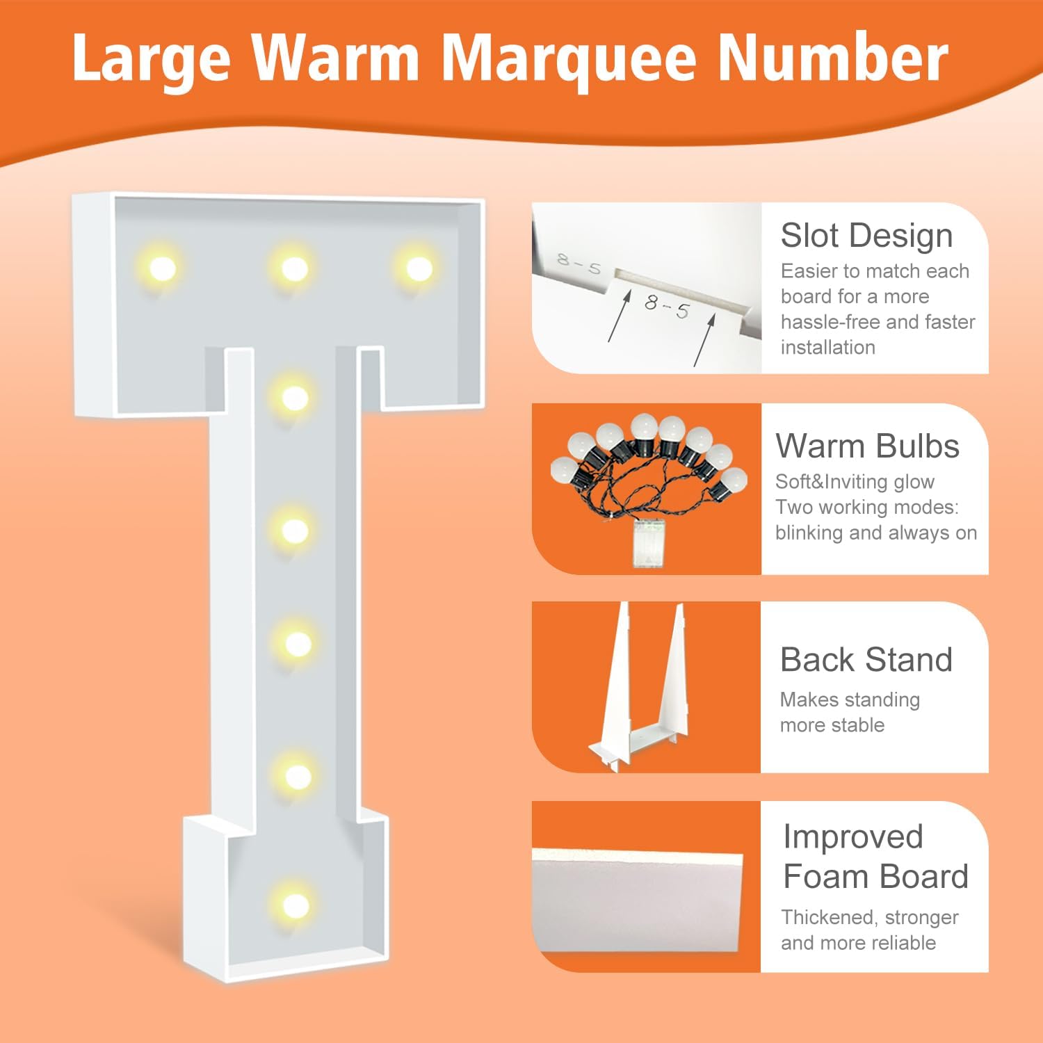 3FT Light Up Marquee Letters T, Large Lighted Letters for Party Backdrop Decor, Mosaic Cardboard Letter for Weddings, Birthdays, Anniversaries, New Year's Celebrations, Easy to Assemble