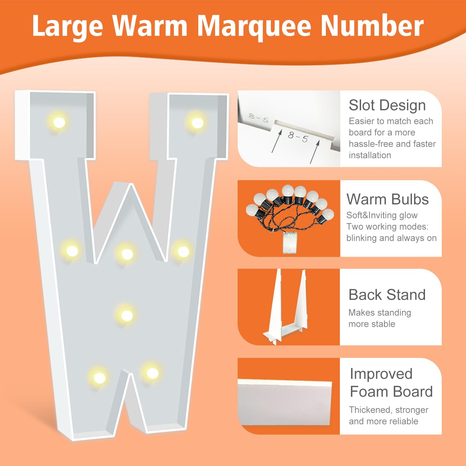 3FT Marquee Letters, Warm Light Marquee Light Up Letters W, Large Light Up Letter for Birthday Anniversary Wedding Engagement Decorations, Big Letter Signs for Party Decor