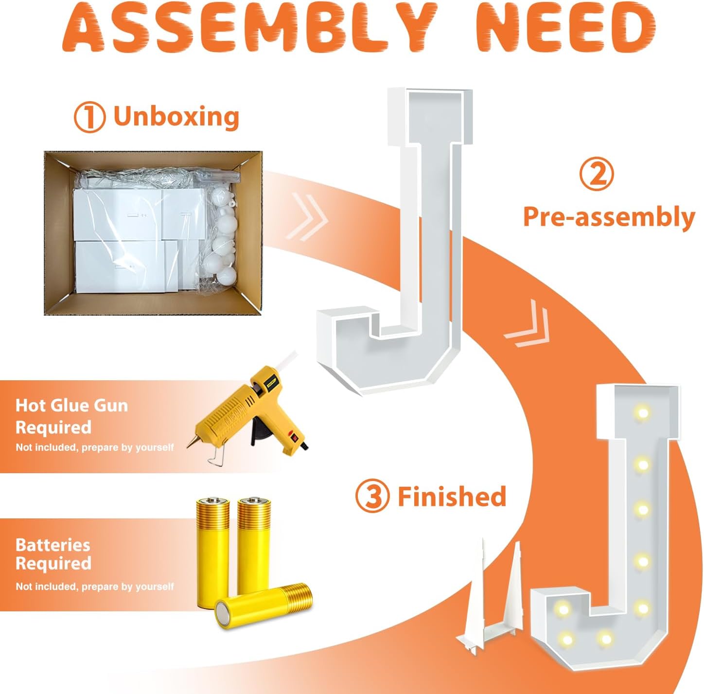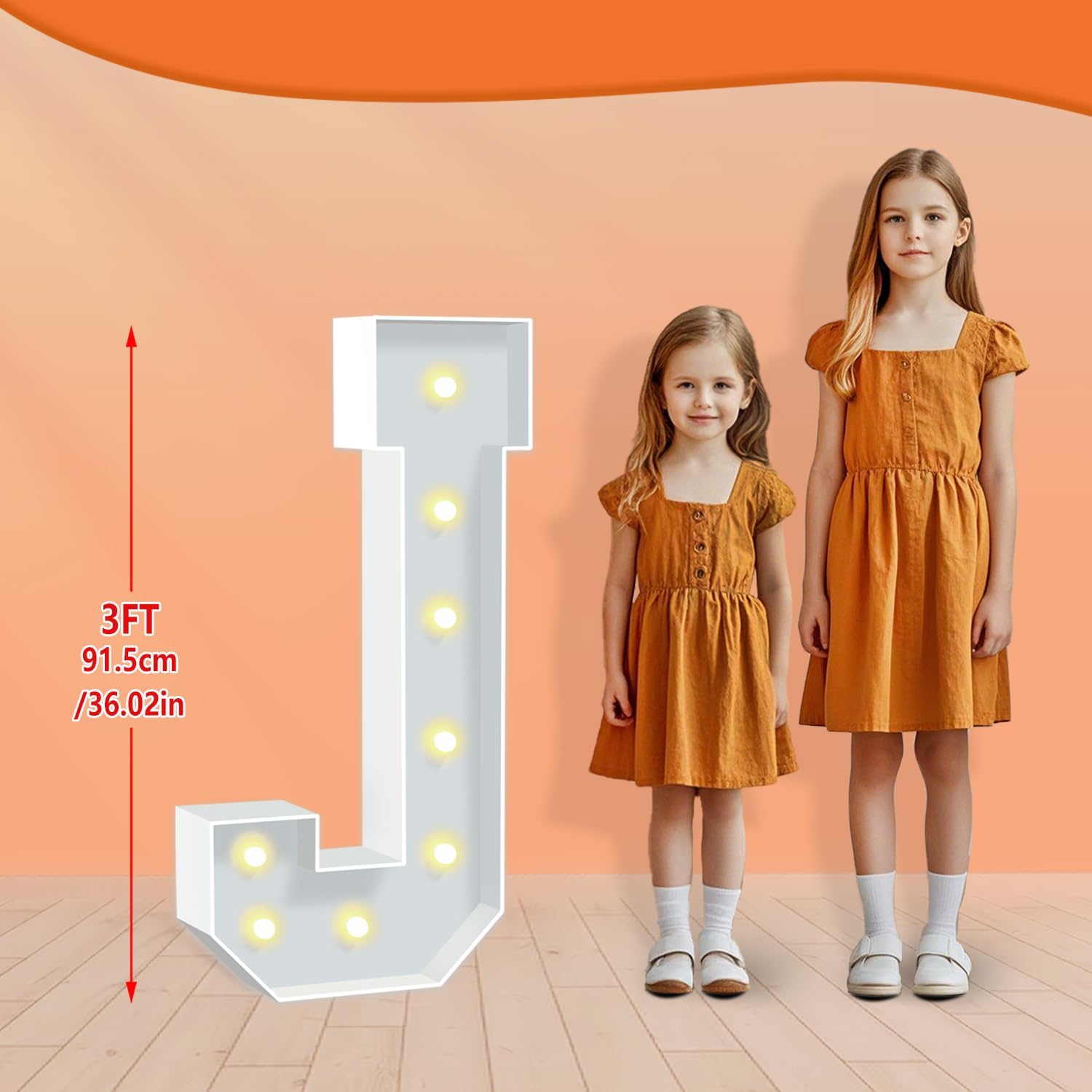 3FT Light Up Marquee Letters, 3 feet Tall Lighted Letters J, Mosaic Large Letter for Party Backdrop Decor, Mosaic Cardboard Letter for Weddings, Birthdays, Anniversaries, Easy to Assemble