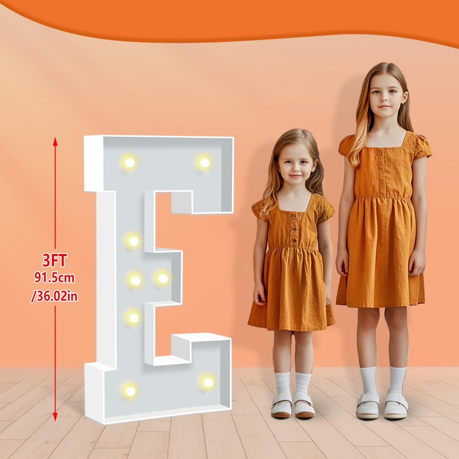Marquee Light Up Letters E, 3FT Foam Board Mosaic Balloon Letters with Light Bulbs, Large Marquee Letter for Birthday Festival Party, Marry Me Light Up Letter for Wedding Engagement Party Decor