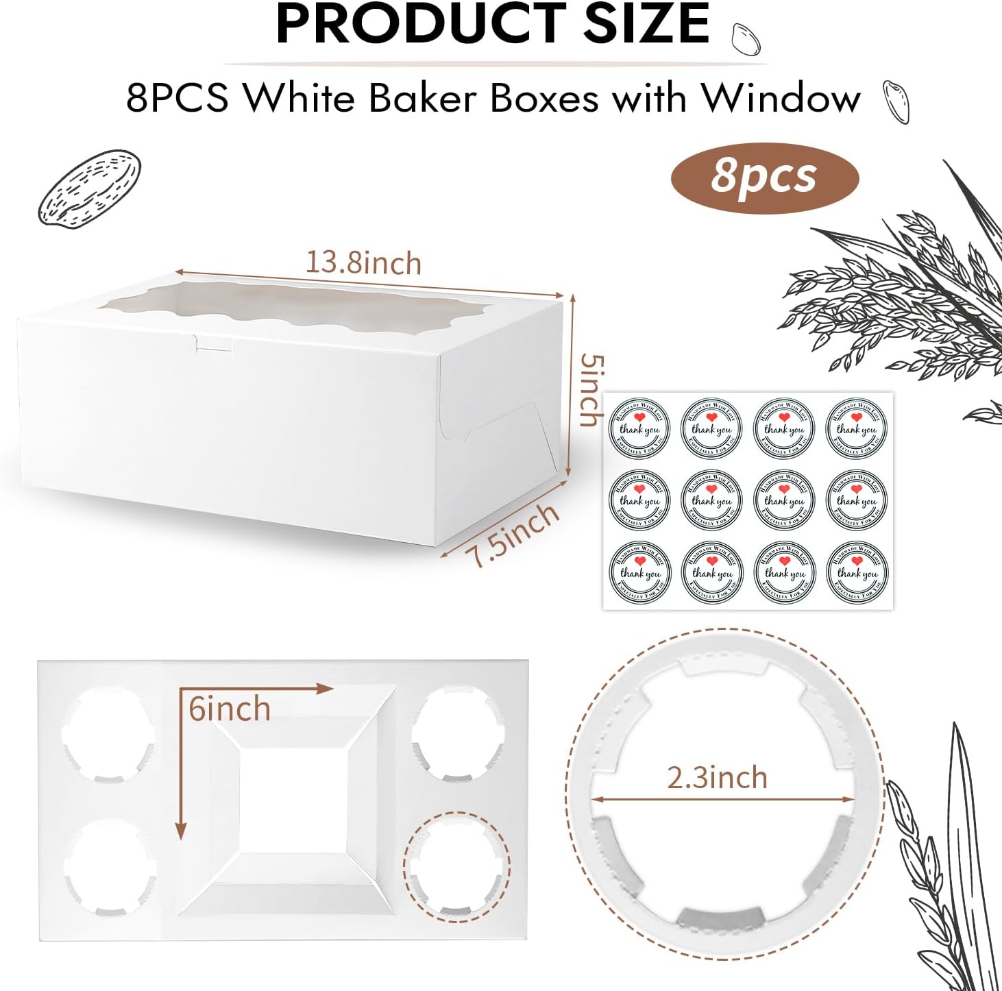 - Package Includes:8 Packs Cake and Cupcake Box Combo with Clear Window.cupcake boxes + inserts+ Stickers.The paper inserts keep the cupcakes stay in place from moving around. The cake box has a wide viewing angle, perfect for showcasing cakes while protecting them. It is a great choice for making cupcakes and pastries.