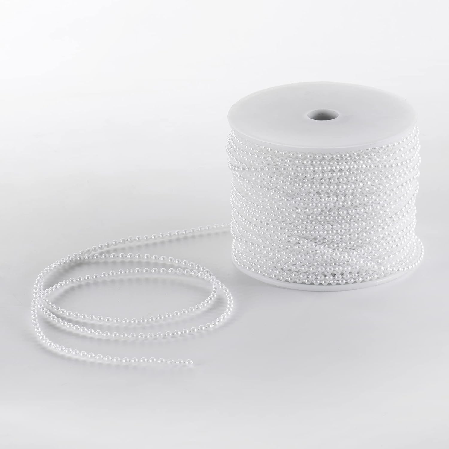 Craft String Pearls 3MM Pearl Bead, 99 Feet White Faux Pearl Garland Spool Roll Strand Wedding Party Decoration