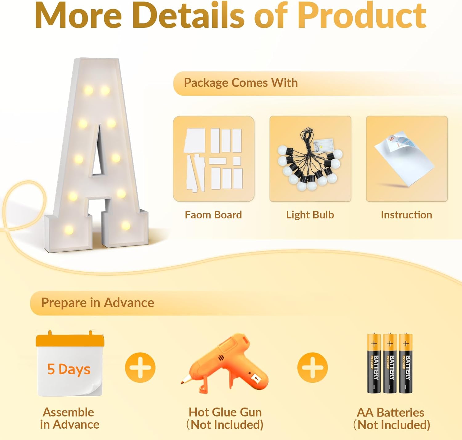 - Quality Customer Service: Your satisfaction is our top priority. If you encounter any issues about assembly, missing pieces, product damage and bulbs don’t work during using our big light up letters, feel free to contact us anytime, and we will be dedicated to providing solutions