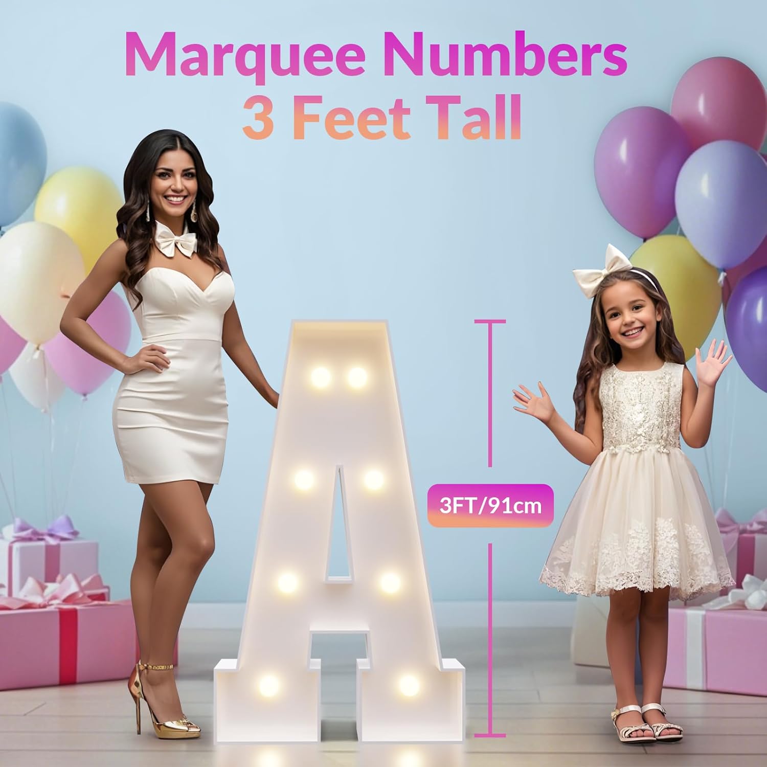 - Crafted from Sturdy Foam Board: Built with Sturdy foam board, our 3ft marquee light up letters provide exceptional stability and long-lasting performance. The included backstand ensures they stay firmly in place, offering worry-free party decorations