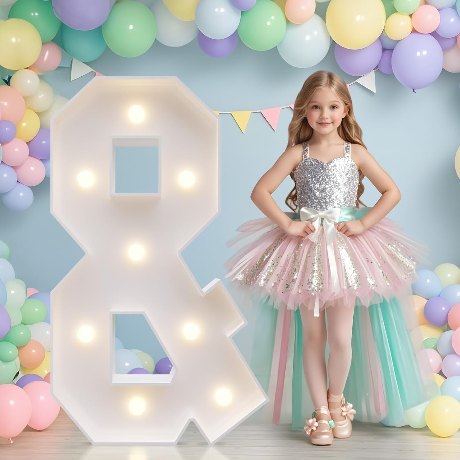 - Crafted from Sturdy Foam Board: Built with Sturdy foam board, our 3ft marquee light up letters provide exceptional stability and long-lasting performance. The included backstand ensures they stay firmly in place, offering worry-free party decorations
