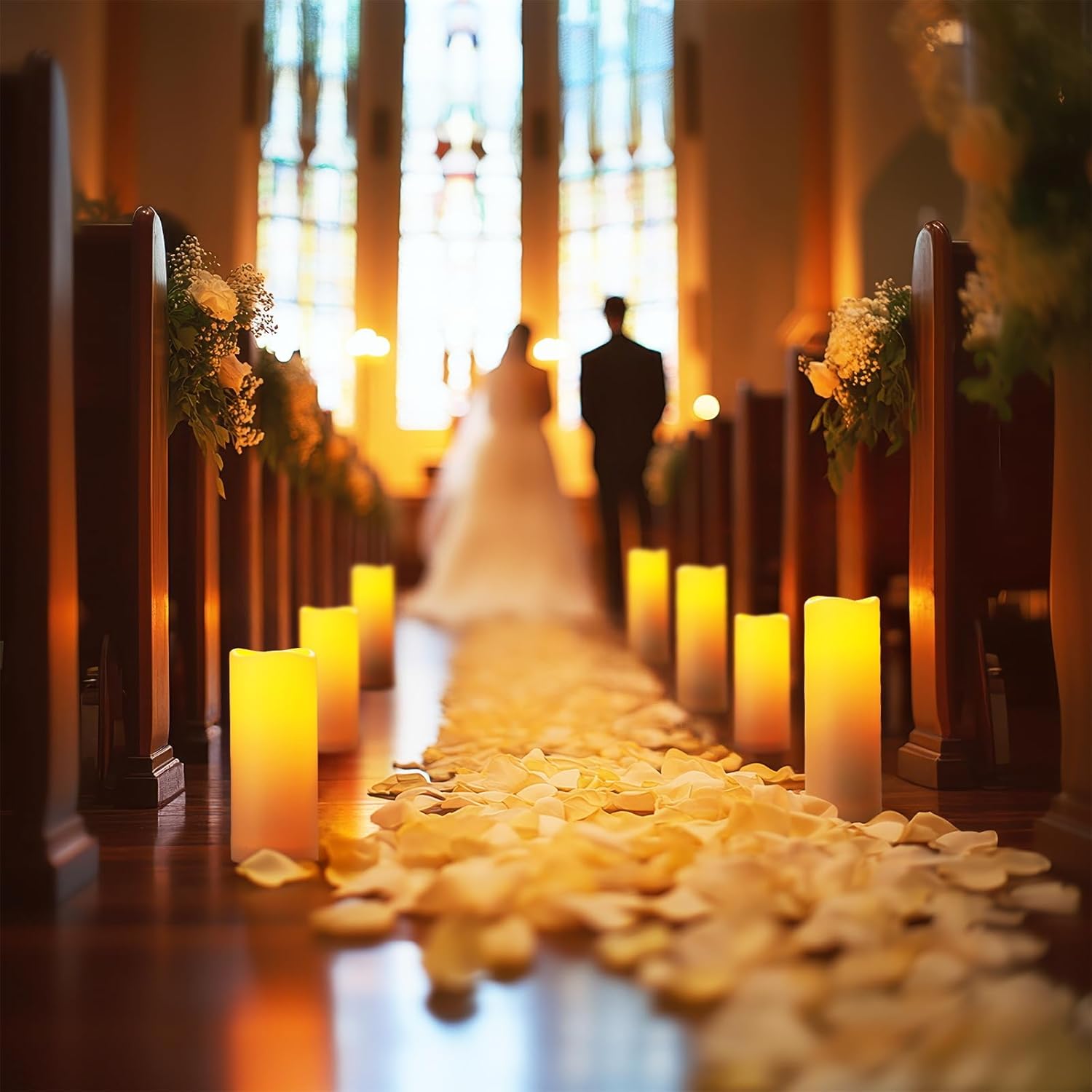 - 4. 12-Piece Set with 4 Unique Sizes for Versatile Decor Includes 12 ivory candles in two customizable size combinations. Flexible for tiered displays, pathways, or tablescapes. Powered by 2 AA batteries (not included).