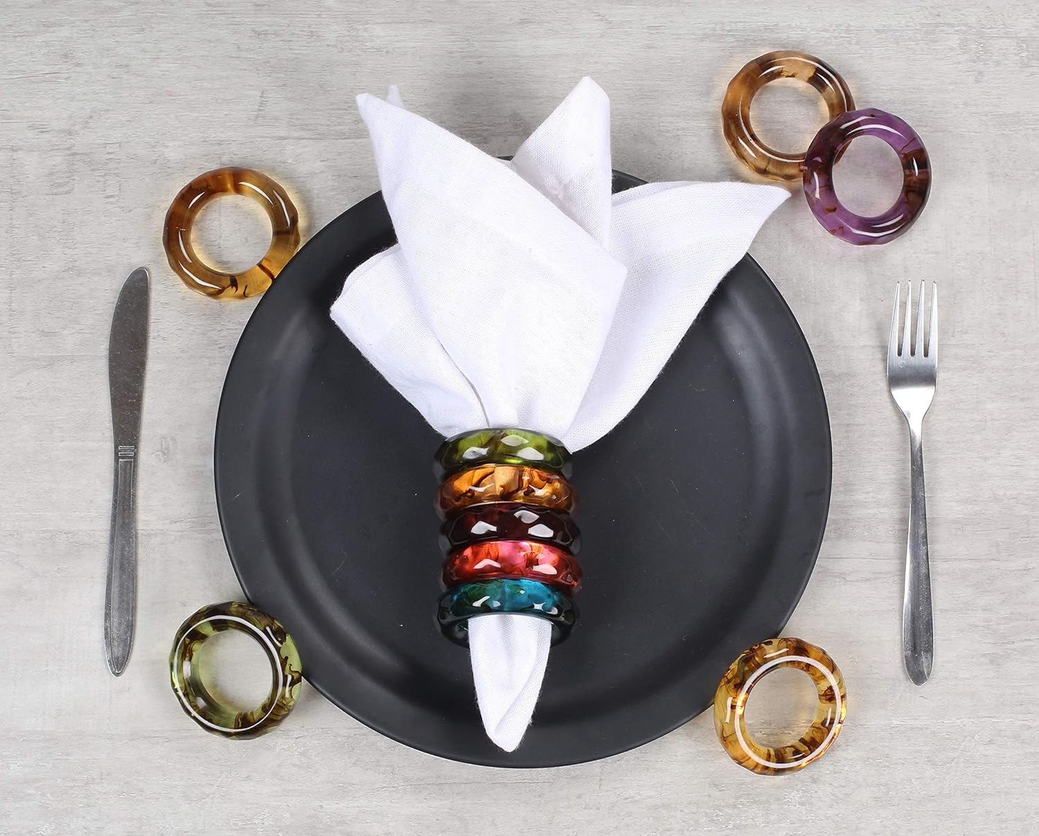 Epoxy Resin Napkin Holders for Cloth Napkins Set of 12 - Decorative Napkin Holders for Weddings, Parties & Everyday Dining - Diamond-Top Design in 6 Assorted Pastel Colors - CLEENTABLE