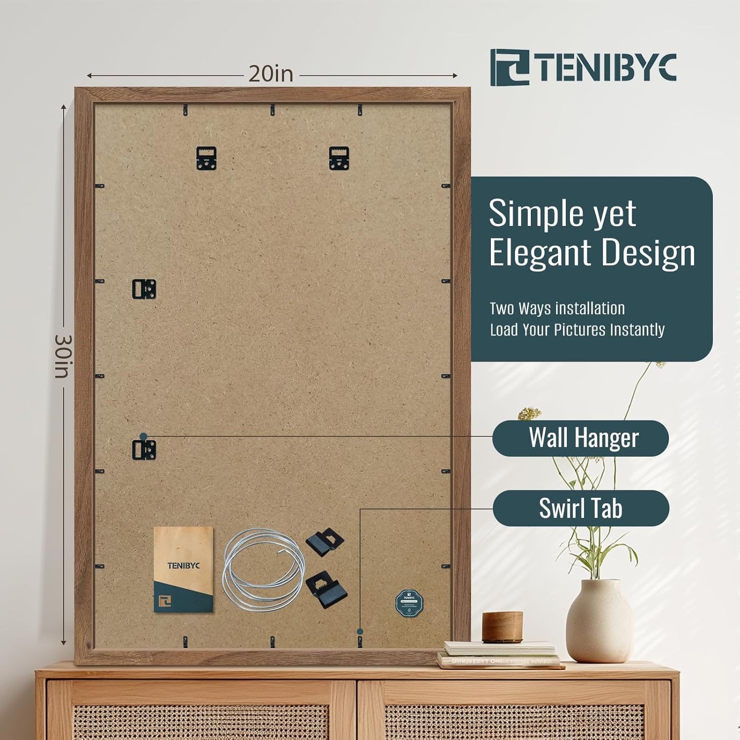 - ăStrong PracticalityăOur walnut frame back panel is equipped with multiple hangers, so it can be displayed on the wall horizontally or vertically, perfectly adapting to 20x30 or 30x20 photos. Additionally, our unique spin-lock design ensures a swift and effortless setup
