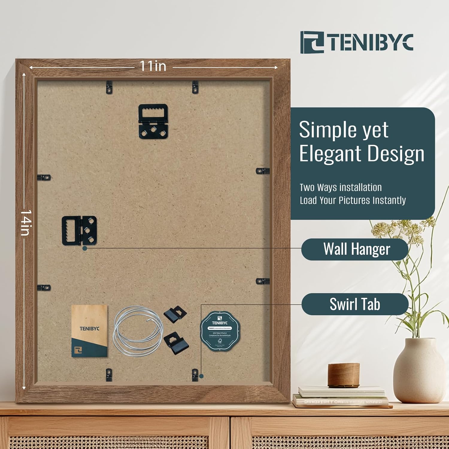 - 【Strong Practicality】Our walnut frame back panel is equipped with multiple hangers, so it can be displayed on the wall horizontally or vertically, perfectly adapting to 11x14 or 14x11 photos. Additionally, our unique spin-lock design ensures a swift and effortless setup
