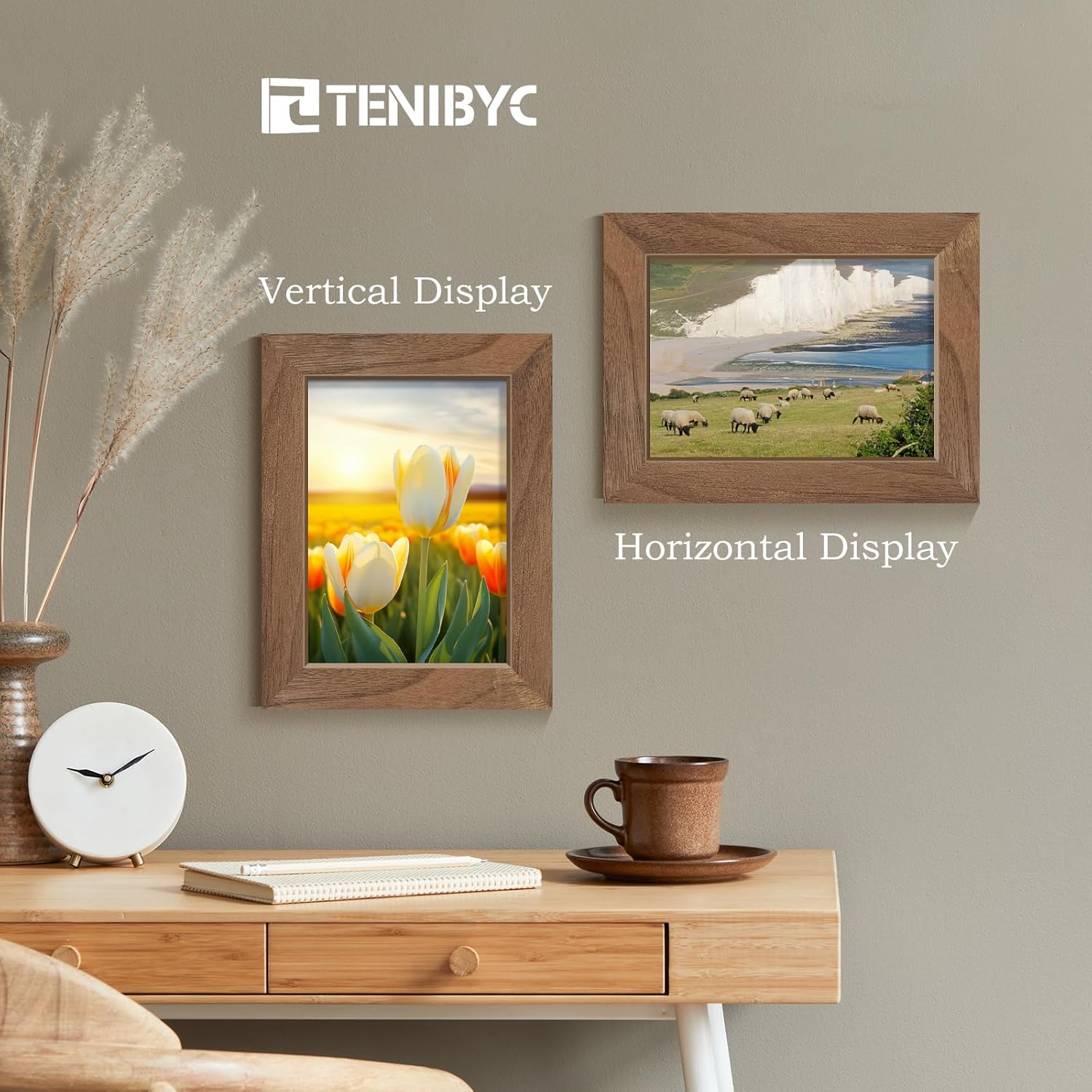 - 【Strong Ornamental Value】TENIBYC walnut frame, like a delicate painting endowed by nature. The color is a steady brown, embellished with dark or light black wood grain, which looks natural and elegant from afar, and exquisite and delicate up close
