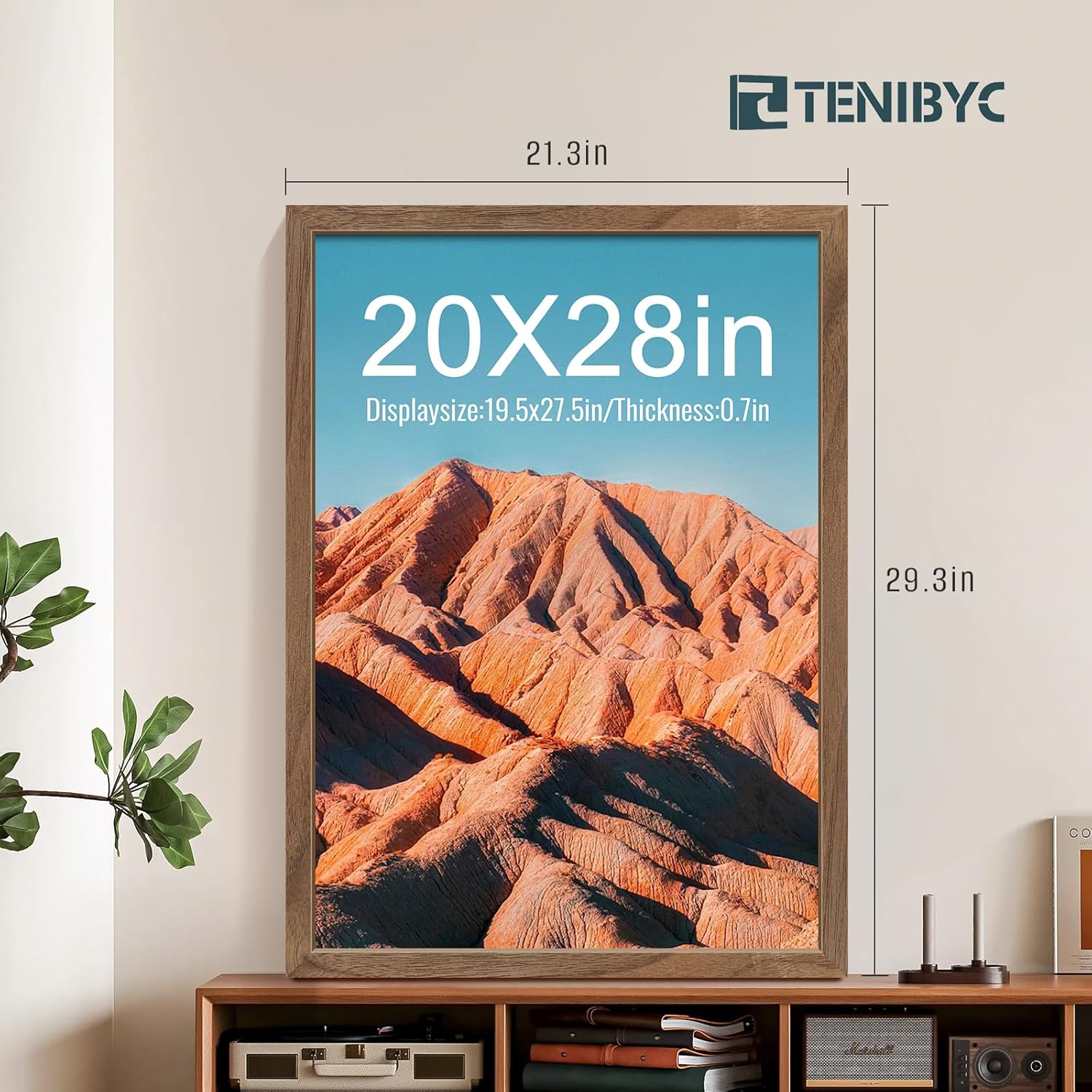 20x28 Picture Frame 4 Pack - Brown Walnut Wood, 20 x 28 Poster Frame for Gallery, Home and Office - Wall Hanging