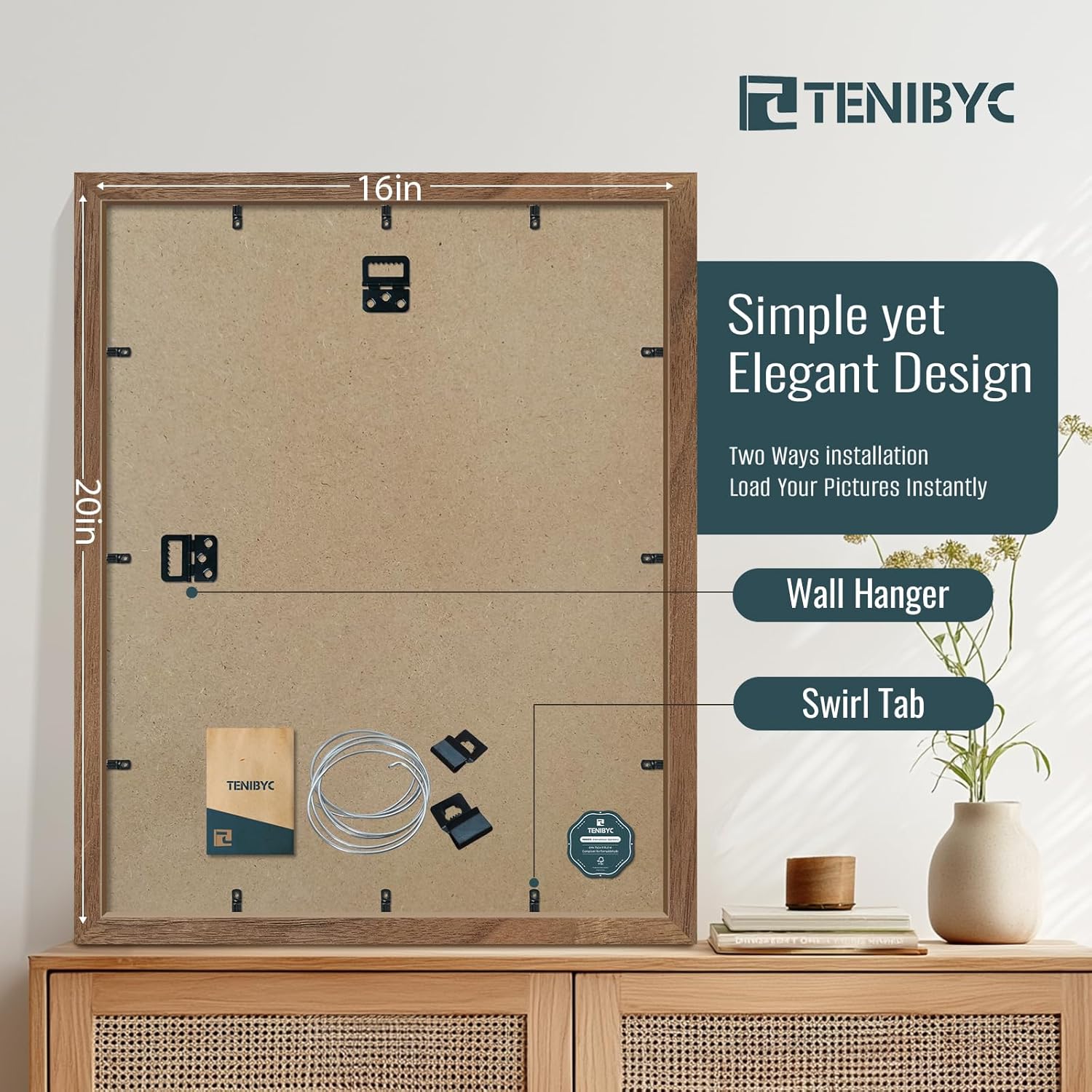 - 【Strong Practicality】Our walnut frame back panel is equipped with multiple hangers, so it can be displayed on the wall horizontally or vertically, perfectly adapting to 16x20 or 20x16 photos. Additionally, our unique spin-lock design ensures a swift and effortless setup