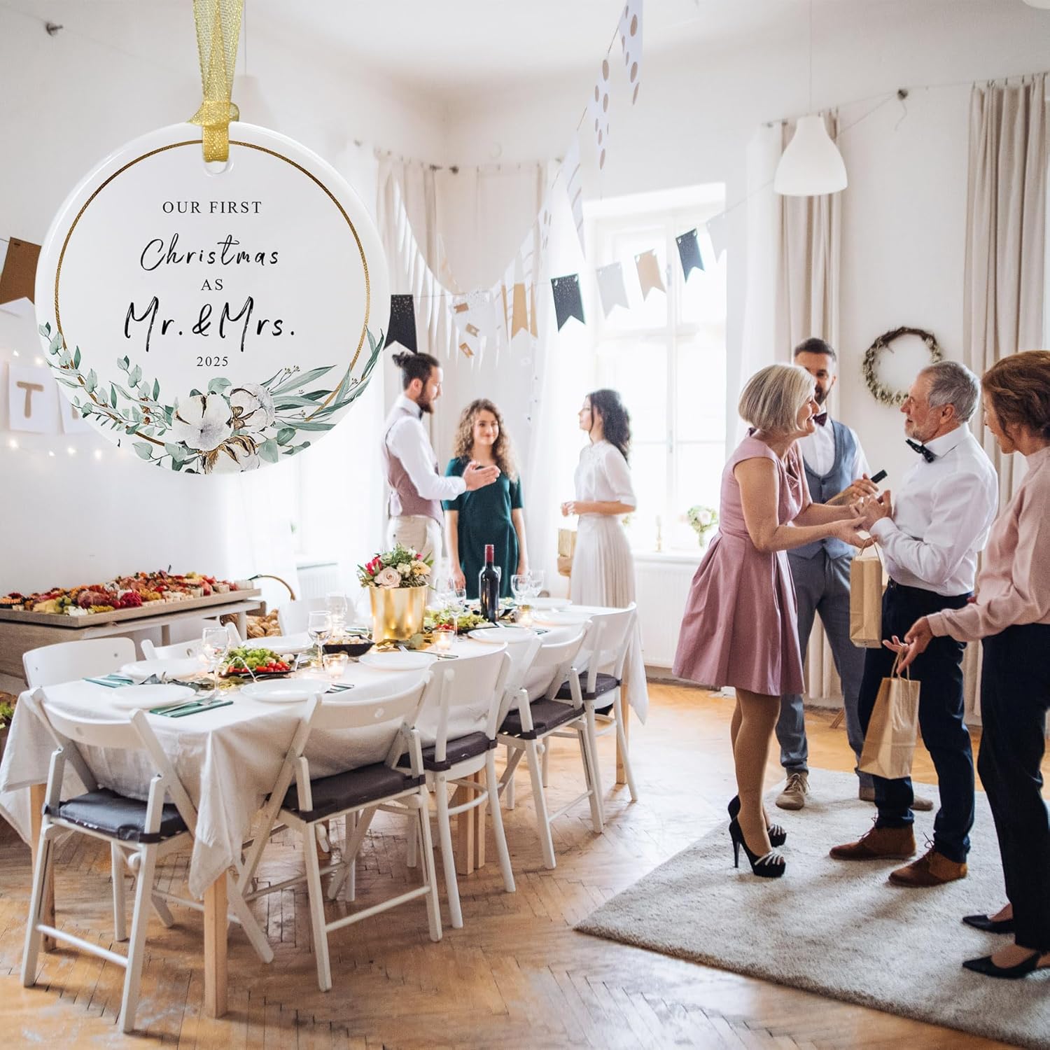 2025 First Christmas Married Ornament,First Year as Mr and Mrs Christmas Hanging Ornament Wedding Decoration for Couple