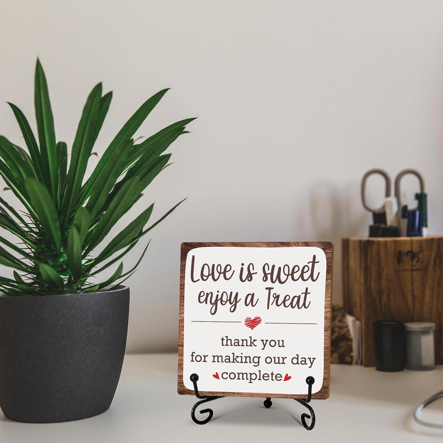 5“ Romantic Decor Plaque, Love Is Sweet Enjoy A Treat Table Sign With 1 Iron Support For Wedding Party Dessert Table, Wedding Party Bridal Shower Anniversary Valentine's Day Party Decor.