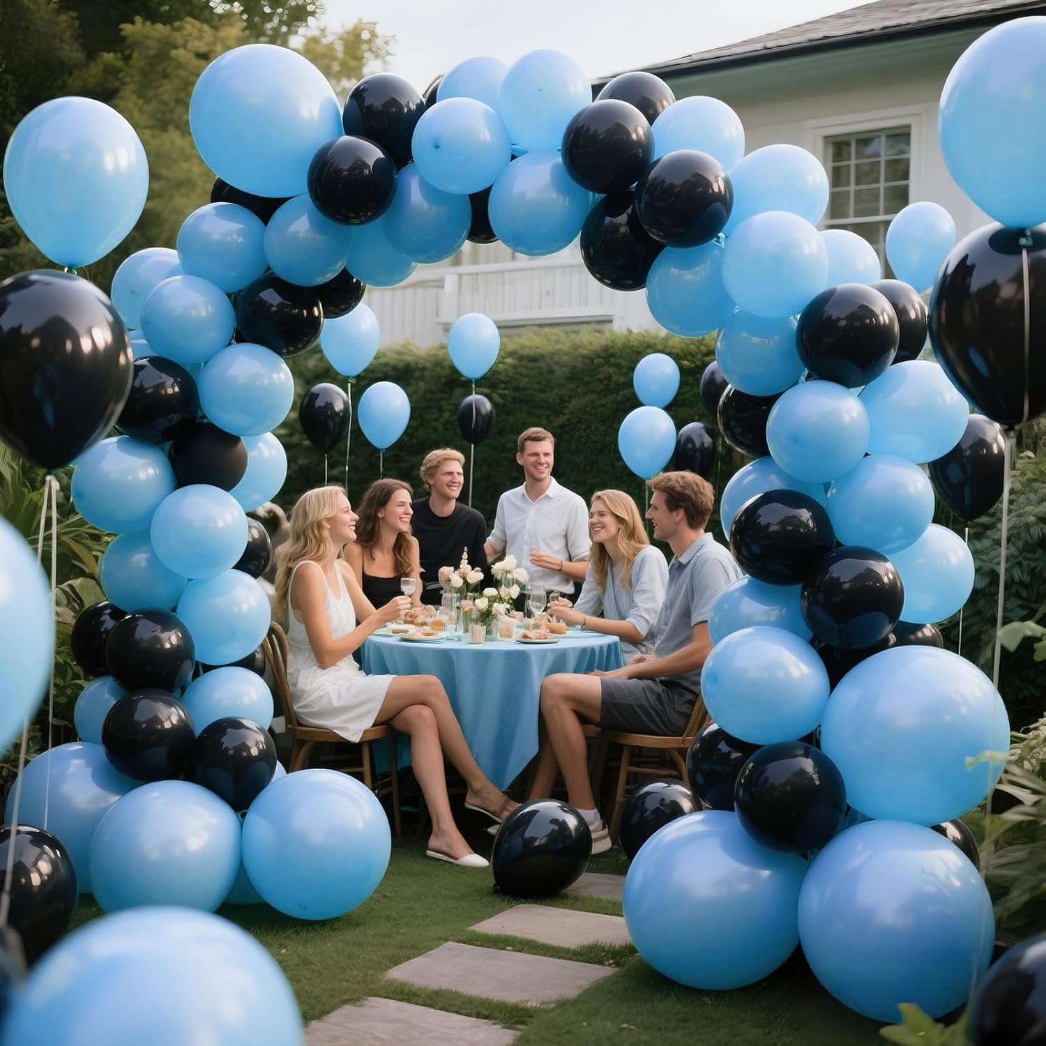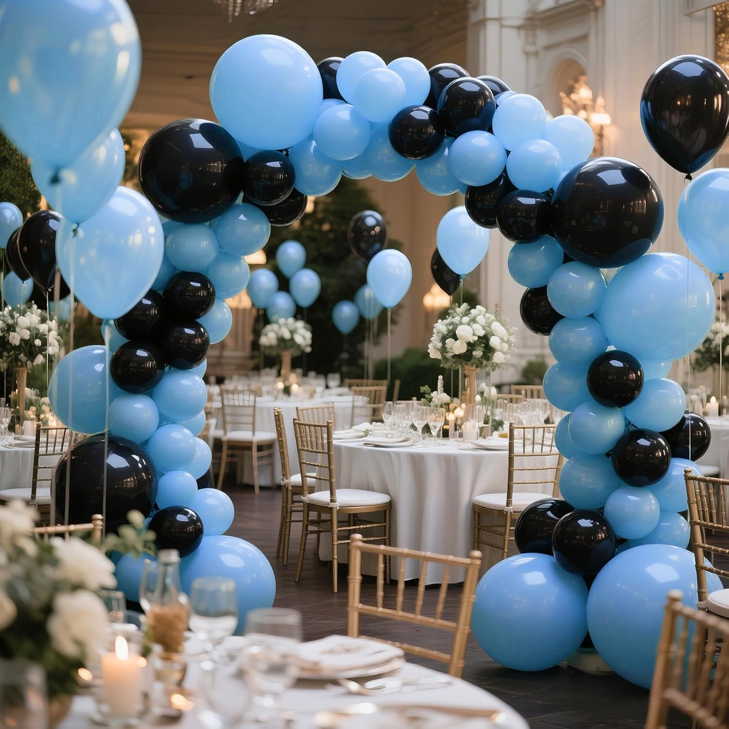 - Baby Blue balloon garland kit: 111Pcs baby Blue balloons pack, including 8 pcs 18 inch balloons, 50 pcs 12 inch balloons, 50 pcs 5 inch balloons, a 5 meter balloon chain, 100 dots of glue dots, a roll of ribbon.