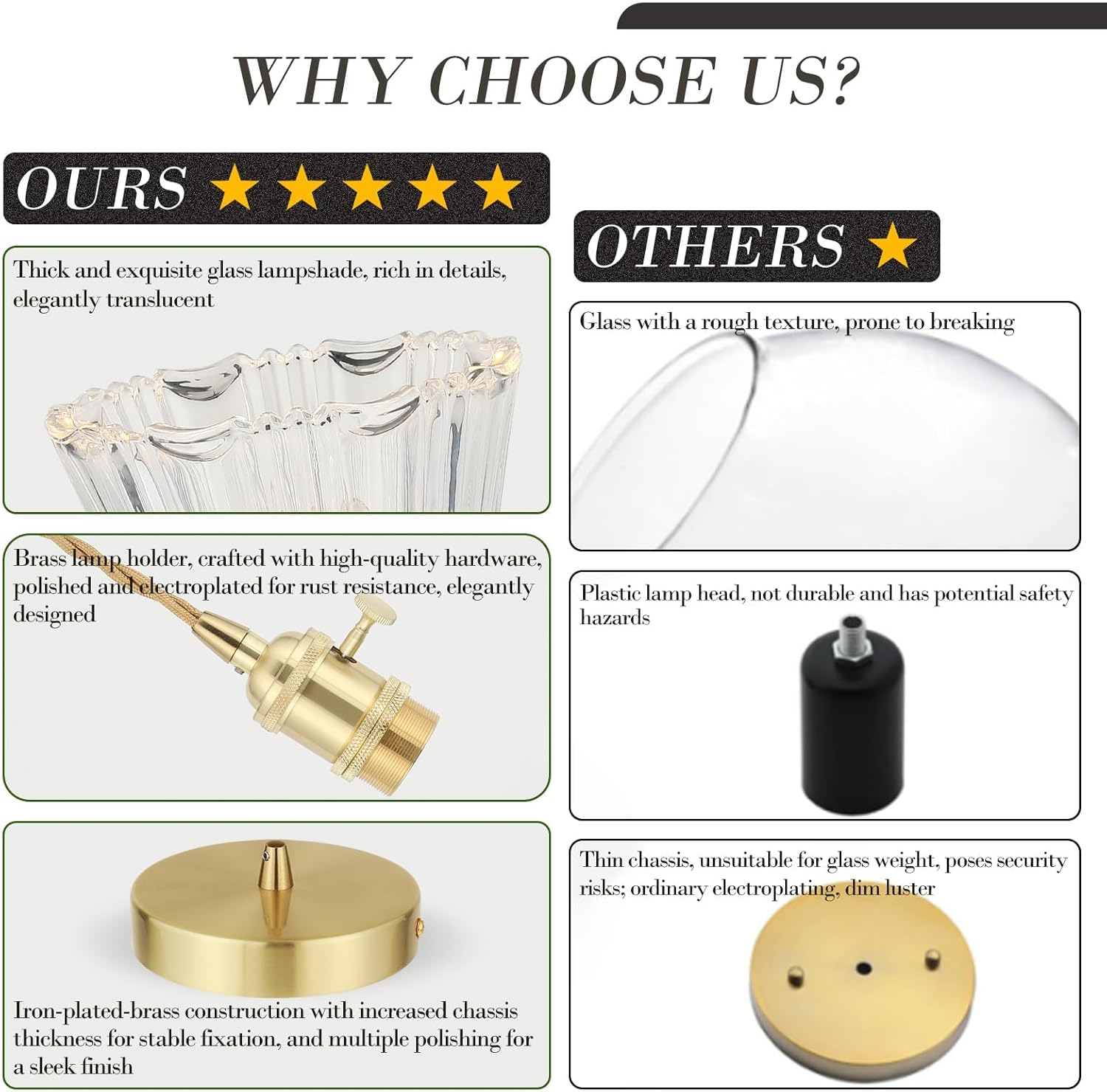 - 【Gold Hanging Light Fixture】 Golden polished brass frame with anti-tarnish coating ensures durability while adding a touch of vintage elegance to farmhouse or modern decor