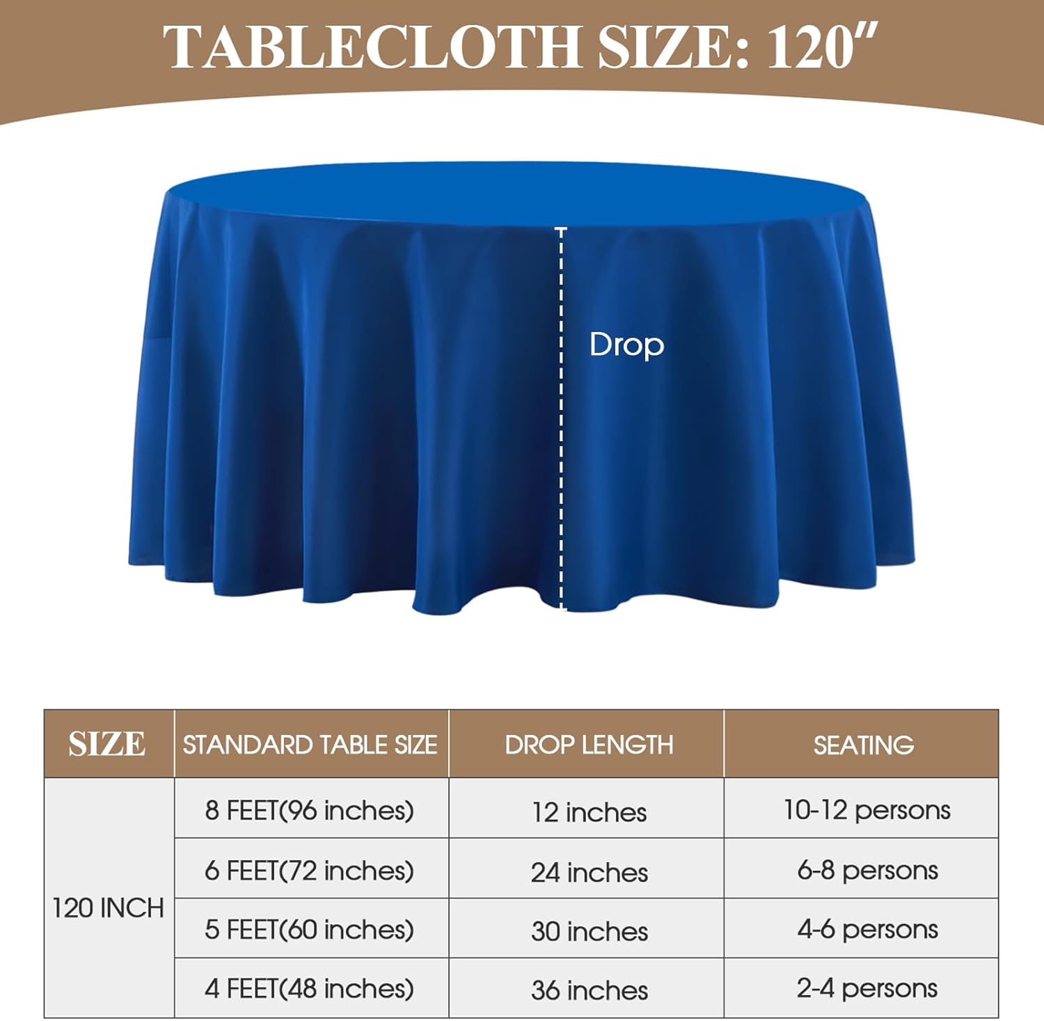 Round Tablecloth 120 Inch 6 Pack Royal Blue Tablecloths Washable Decorative Linen Polyester Table Clothes Cover for Dining Table Banquets Buffet Parties and Wedding