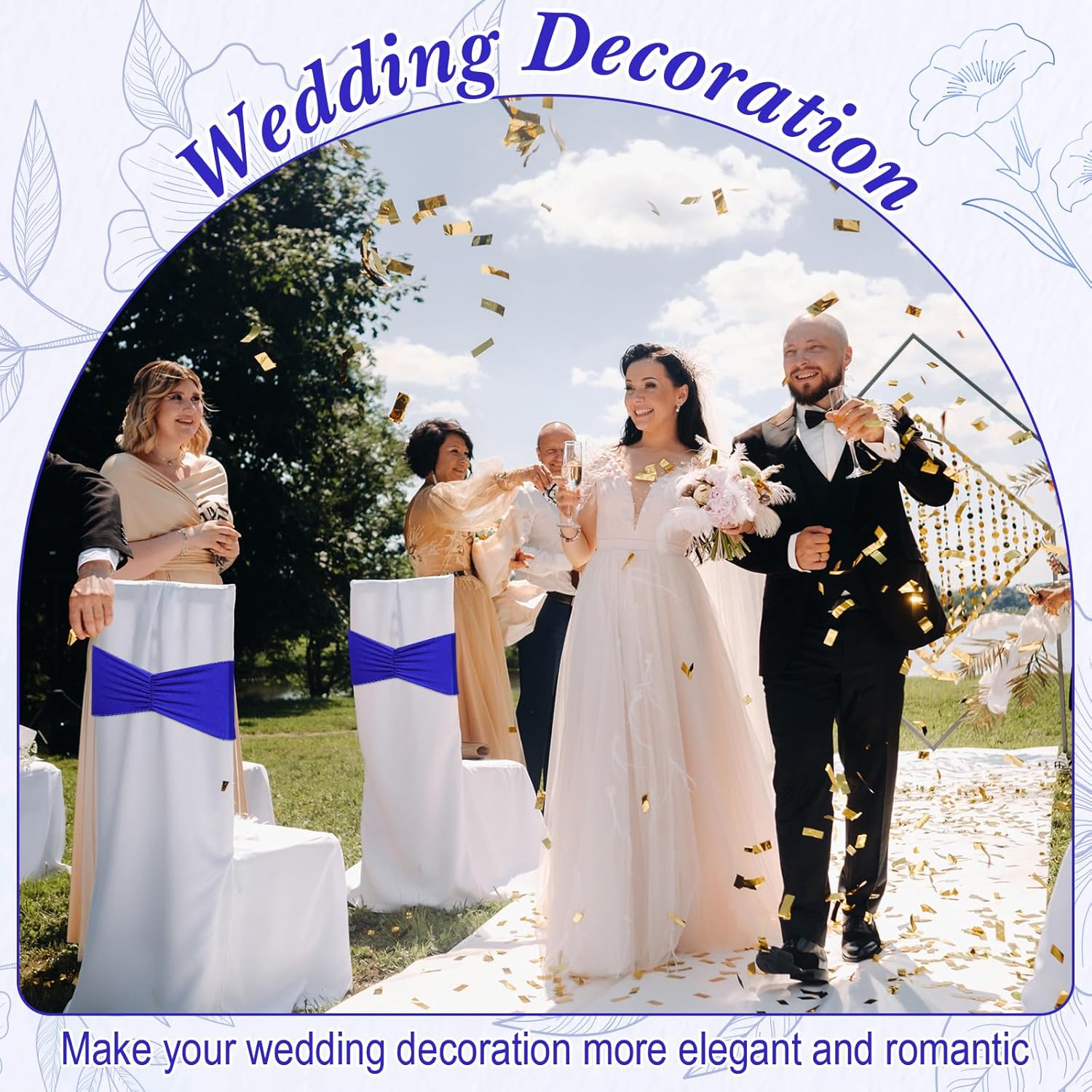 Moukeren 100 Pcs Spandex Chair Sashes Bows Bands Slider Sashes for Chair Covers Elastic Bands Ties Ribbon Decorations for Wedding Party Events Ceremony Birthday Banquet(Royal Blue)