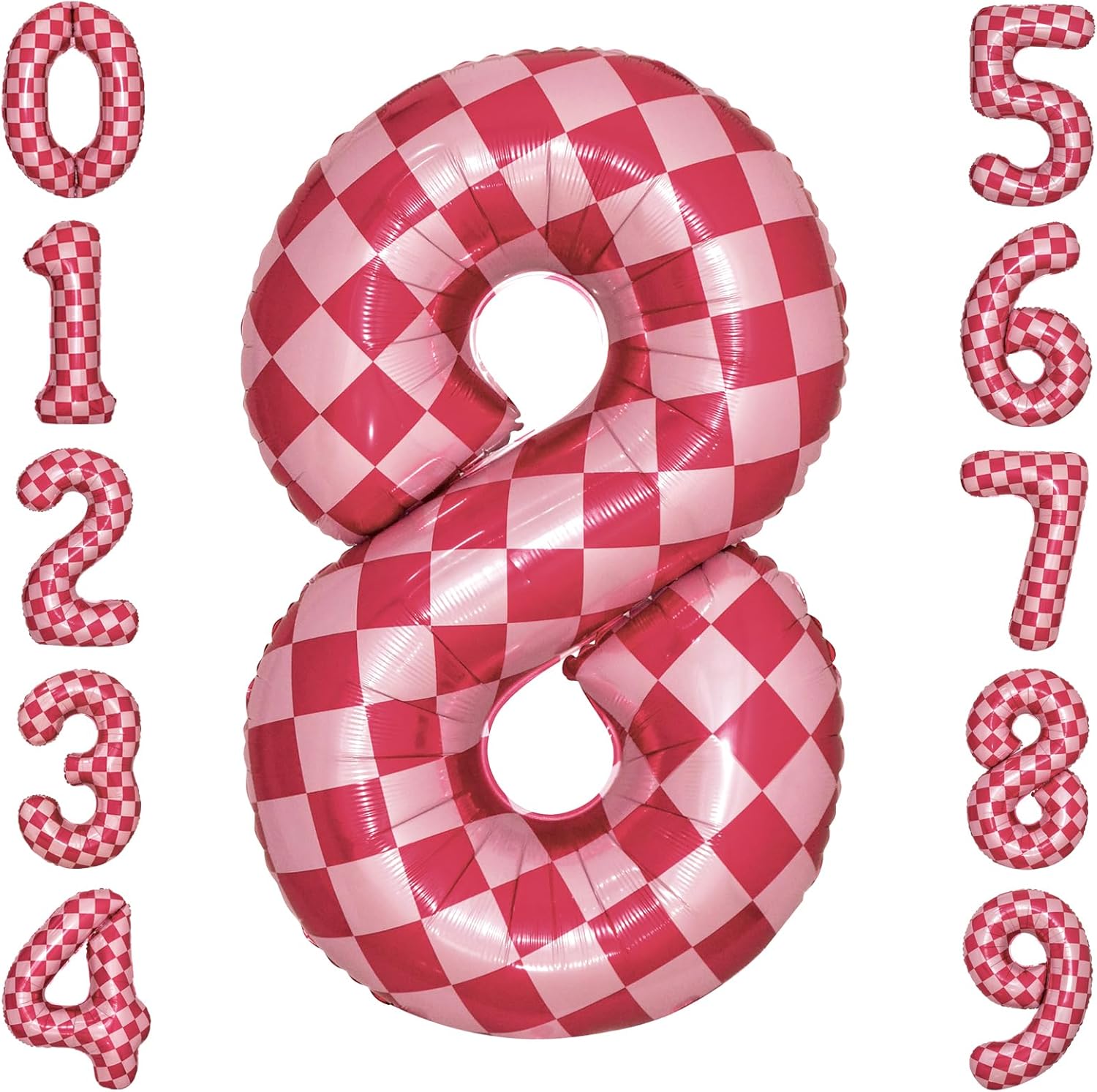 40 Inch Pink Checkered 8 Balloon Large Hot Pink Number Balloons for Girls 8th Birthday Decorations Pink Number 8 Balloon