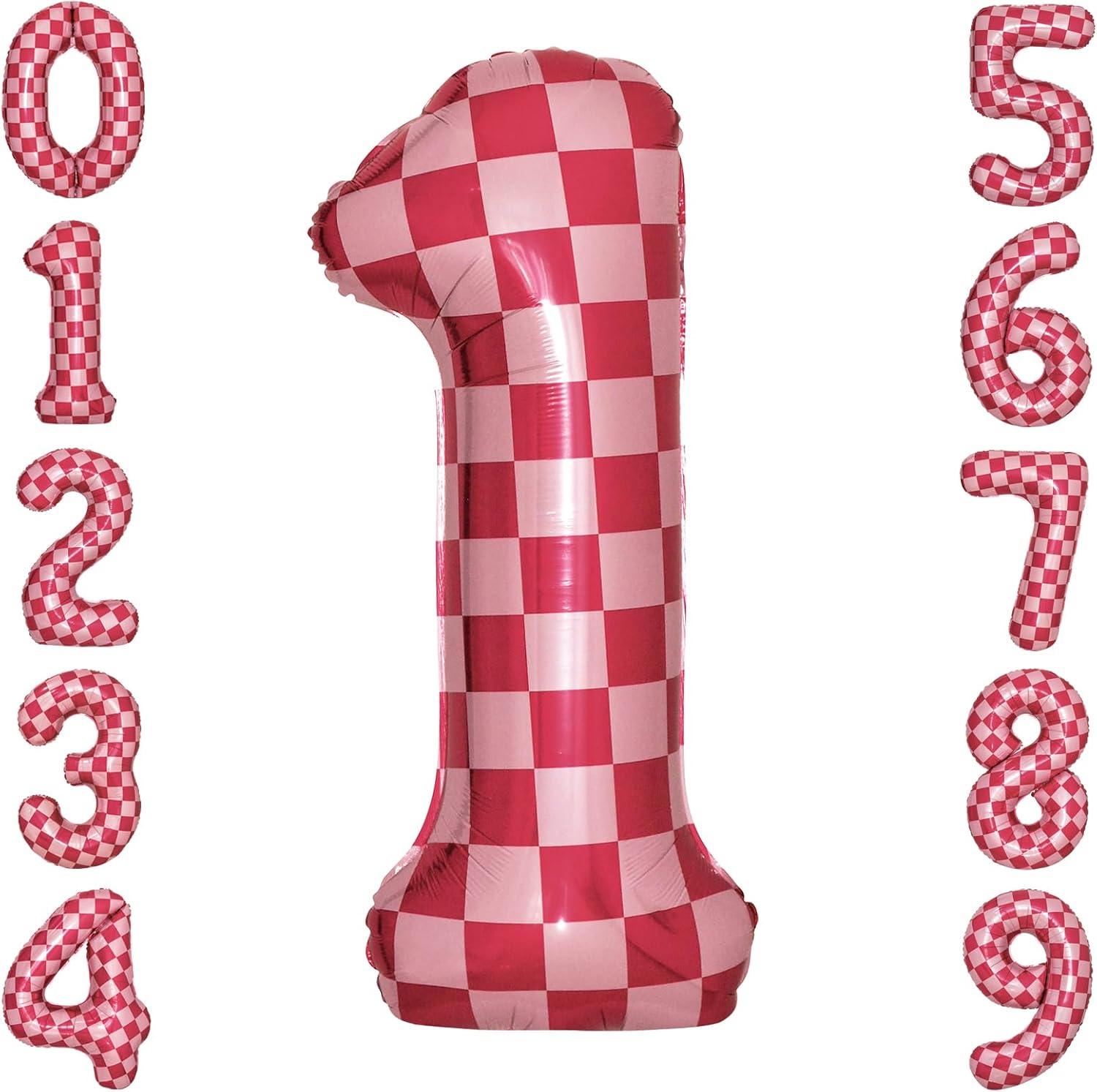 40 Inch Pink Checkered 1 Balloon Large Hot Pink Number Balloons for Girls 1st Birthday Decorations Pink Number 1 Balloon