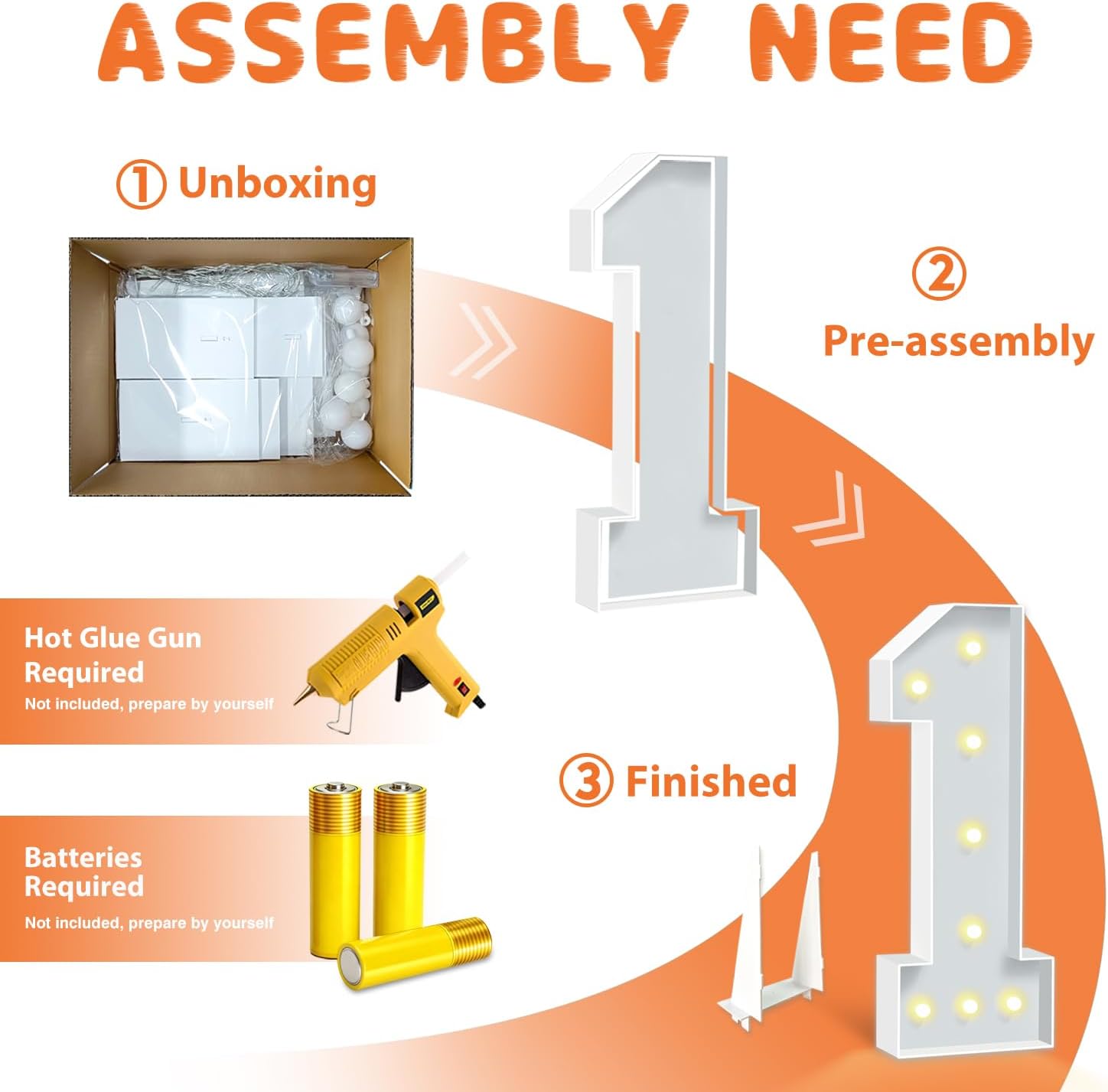 - BRIGHT & SAFE LIGHTING: The light up numbers are powered by 3 AA batteries(not included), ensuring the safety of all your guests. There's a switch on the battery compartment, you can switch the Warm Yellow led light from steady to cheerful flashing, ideal for creating a cozy, inviting ambiance to any celebration or event.