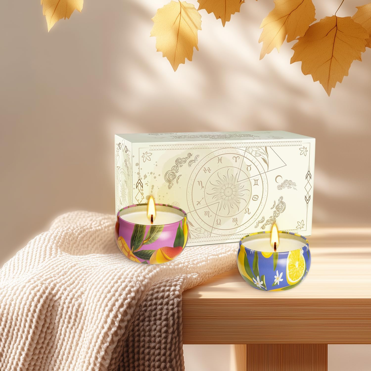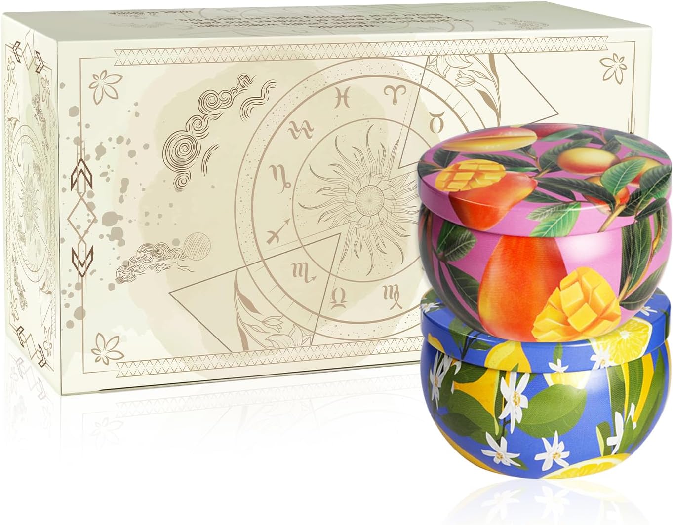 - HOME SCENTED CANDLES: This scented candle gift set includes 2 jars of scented candles: mango and lemon, the natural essential oils will leave you feeling calm, refreshed, and relieved of stress.