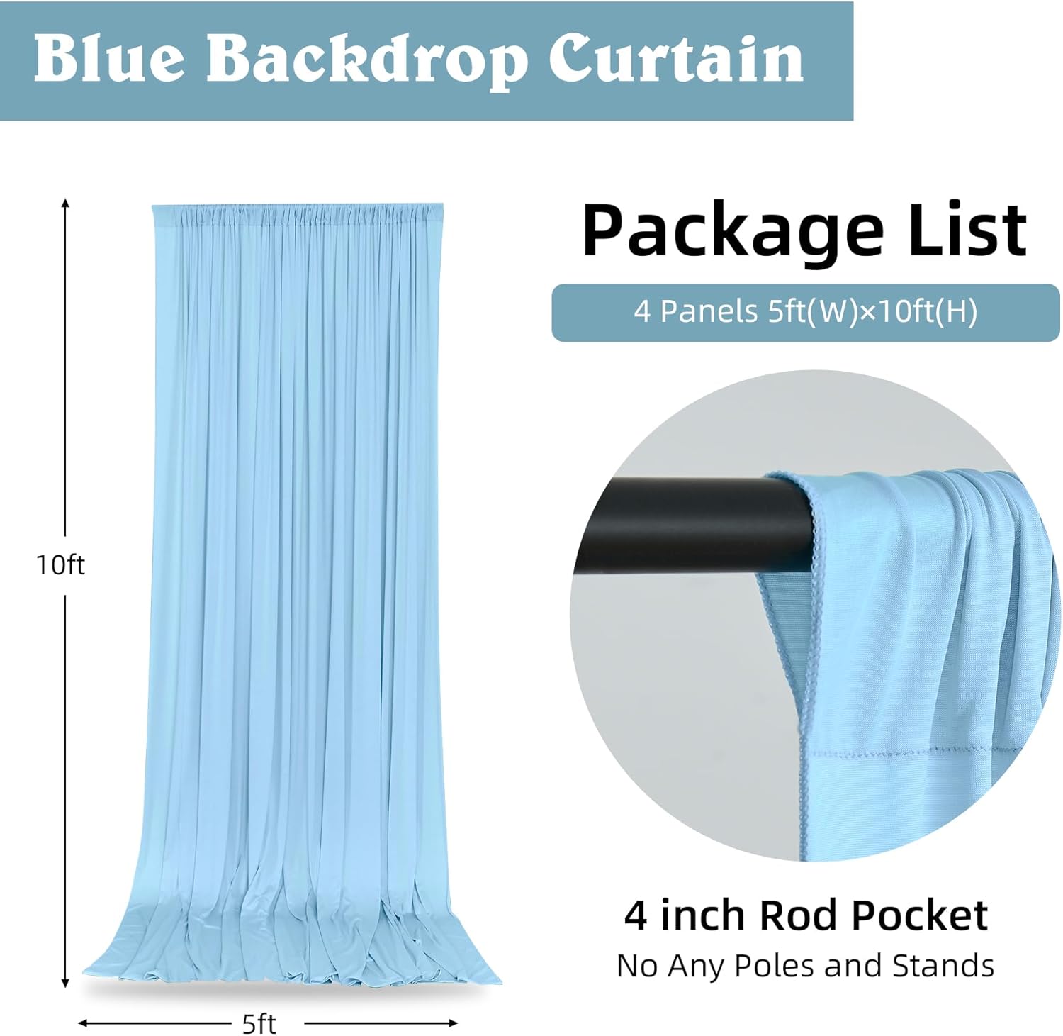 - π Blue Backdrop Curtains 20 x 10 - Each set includes 4 panels blue curtains, each measuring 5ft wide x 10ft long, totaling 20ft x 10ft blue backdrop. perfect for creating stunning dusty blue drapes at weddings, parties, and more. The effect of folding is better.