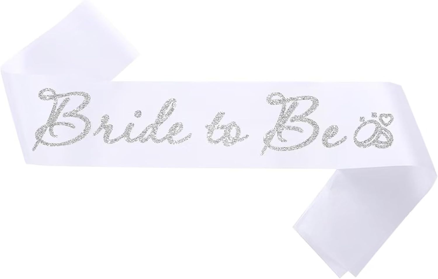 White Bride to Be Sash for Bridal Shower Bachelorette Party Wedding Hen Party Decorations Engagement Gifts Favors Miss to Mrs Sash with Glitter Letter Silver