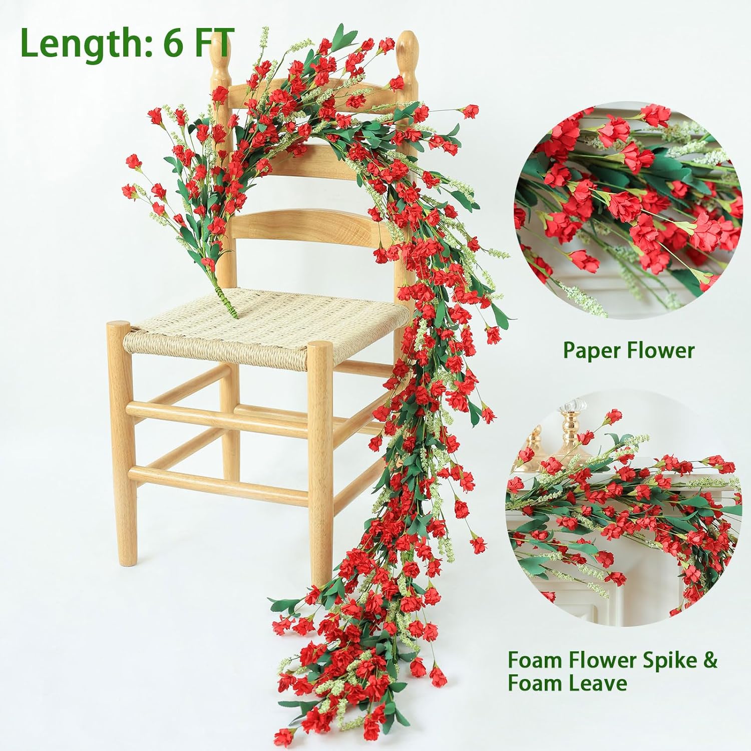 Mizii Burgundy Artificial Flower Garland 6FT Fake Wildflower Floral Garland Hanging Vines Spring Summer Flowers Decorations for Mantle Table Centerpieces Room Wall Fireplace Wedding Decor (Burgundy)